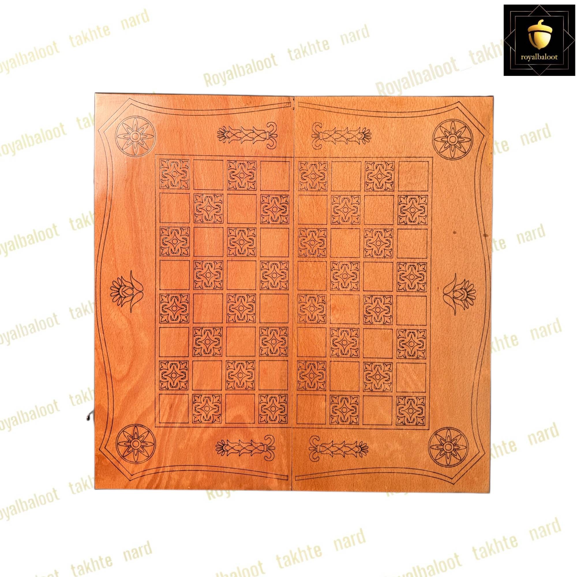 تخته نرد از چوب راش ساخته شده سایز تخته نرد 50*50 استاندارد میباشد همراه مهره تخته نرد چوب گردو زیر پارچه تاس مالزی چرخش بالا و کاور میباشد تخته نرد پلی استر خورده و براق میباشد و دارای قفل میباشد