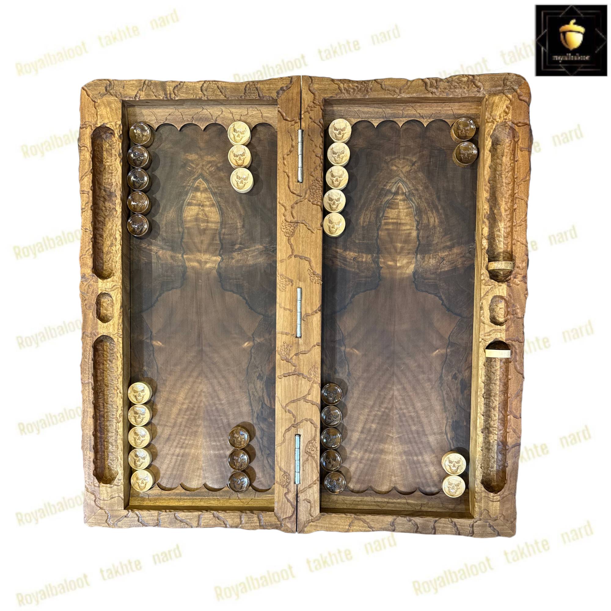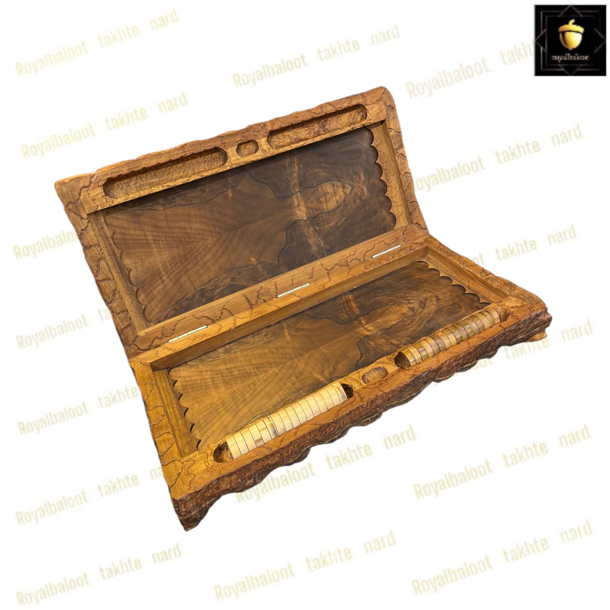 تخته نرد سایز 70 سانتی میباشد تخته نرد از چوب گردو ساخته شده داخل تخته نرد ریشه گردو میباشد کنار تخته نرد جای مهره و جای تاس تعبیه شده پشت تخته نرد کامل منبت کار دست میباشد طرح فریاد تخته نرد دارای سه عدد لولا میباشد لولا به صورت مخفی میباشد برای راحت باز و بسته کردن تخته نرد مهره تخته نرد چوب گردو زیر پارچه تاس المانی سنگین وزن دار مختص تخته نرد های گردو تاس استخوان شتر تاس مالزی و سامسونت چرم رمزدار از جمله متعلقات تخته نرد میباشد منبت تخته نرد بسیار ظریف و با عمق بالا میباشد ریشه داخل تخته نرد بسیار زیبا میباشد تخته نرد به صورت کامل از چوب گردو ساخته شده تخته نرد های گردو منبت تولید مجوعه رویال بلوط به صورت تضمینی میباشد و از بهترین متریال ساخته شده تخته نرد روغن هاردواکس خورده و پوششی عایق و لایه محافظتی روی تخته نرد میباشد
