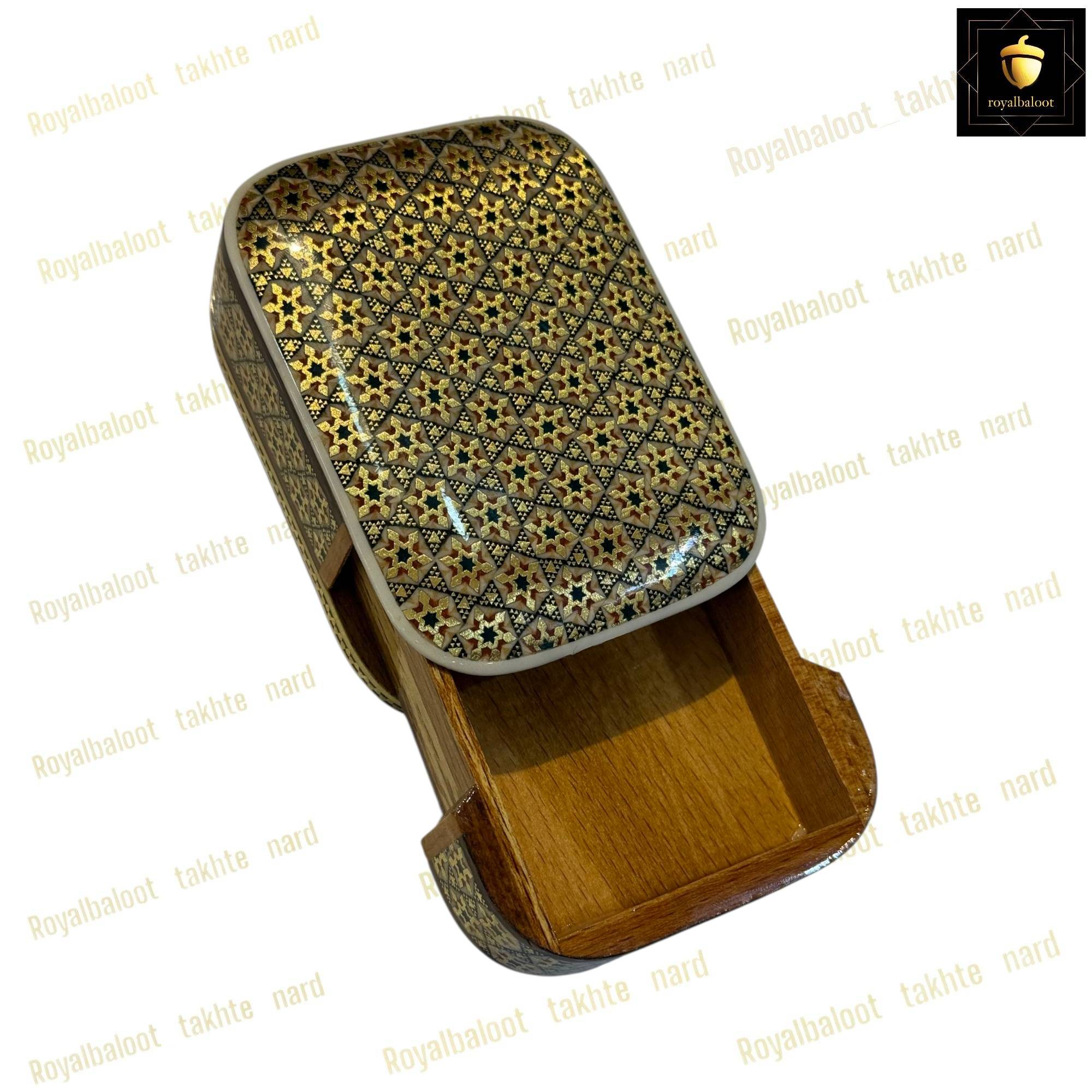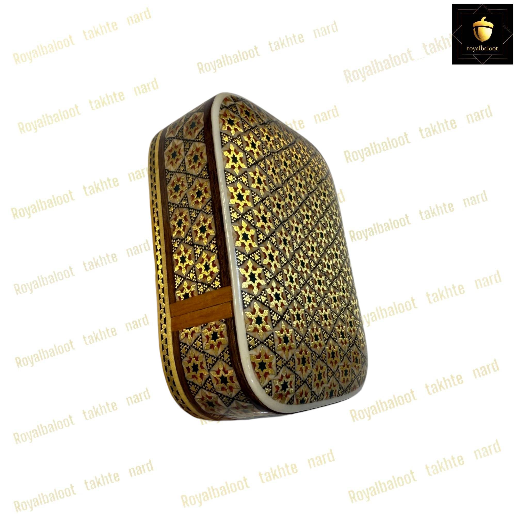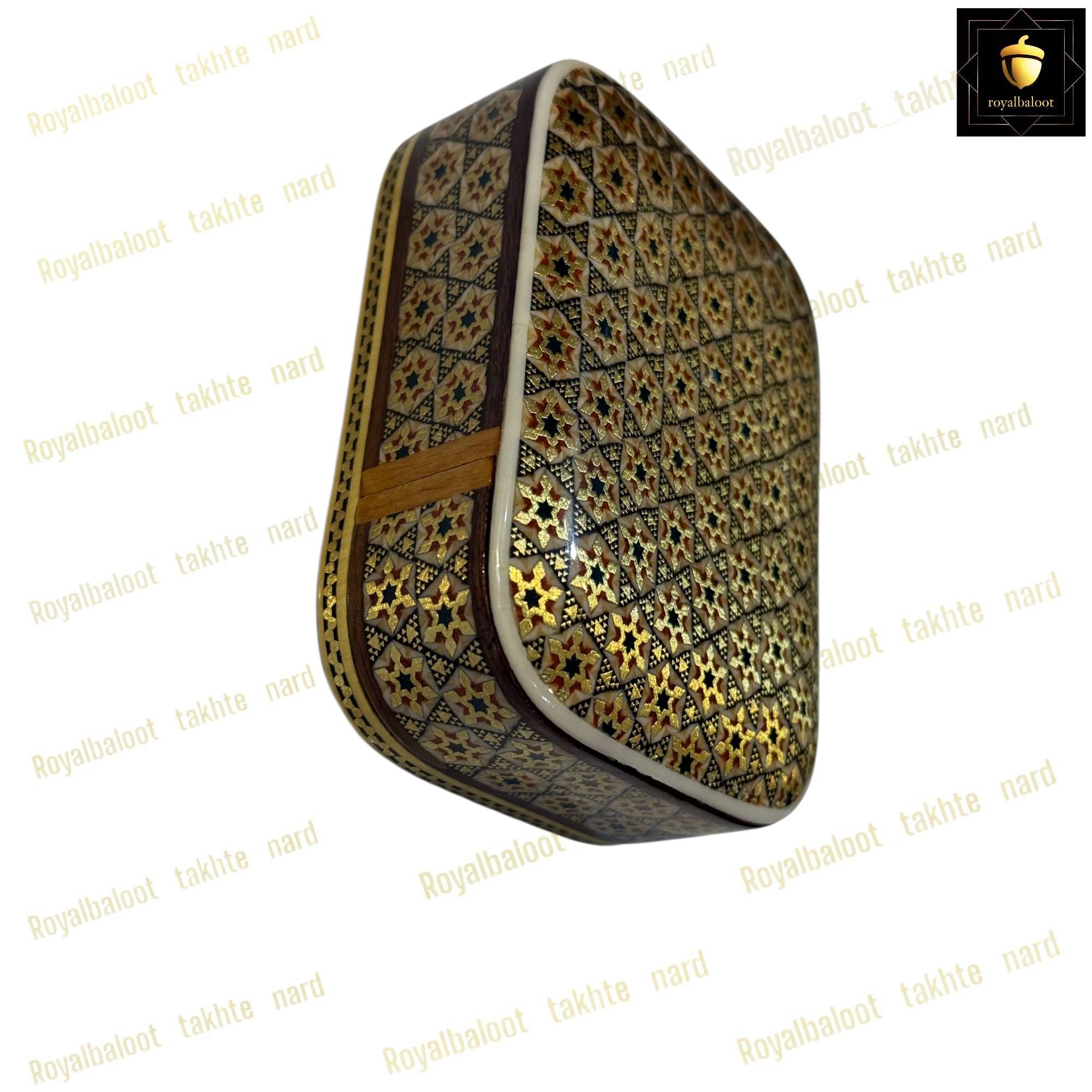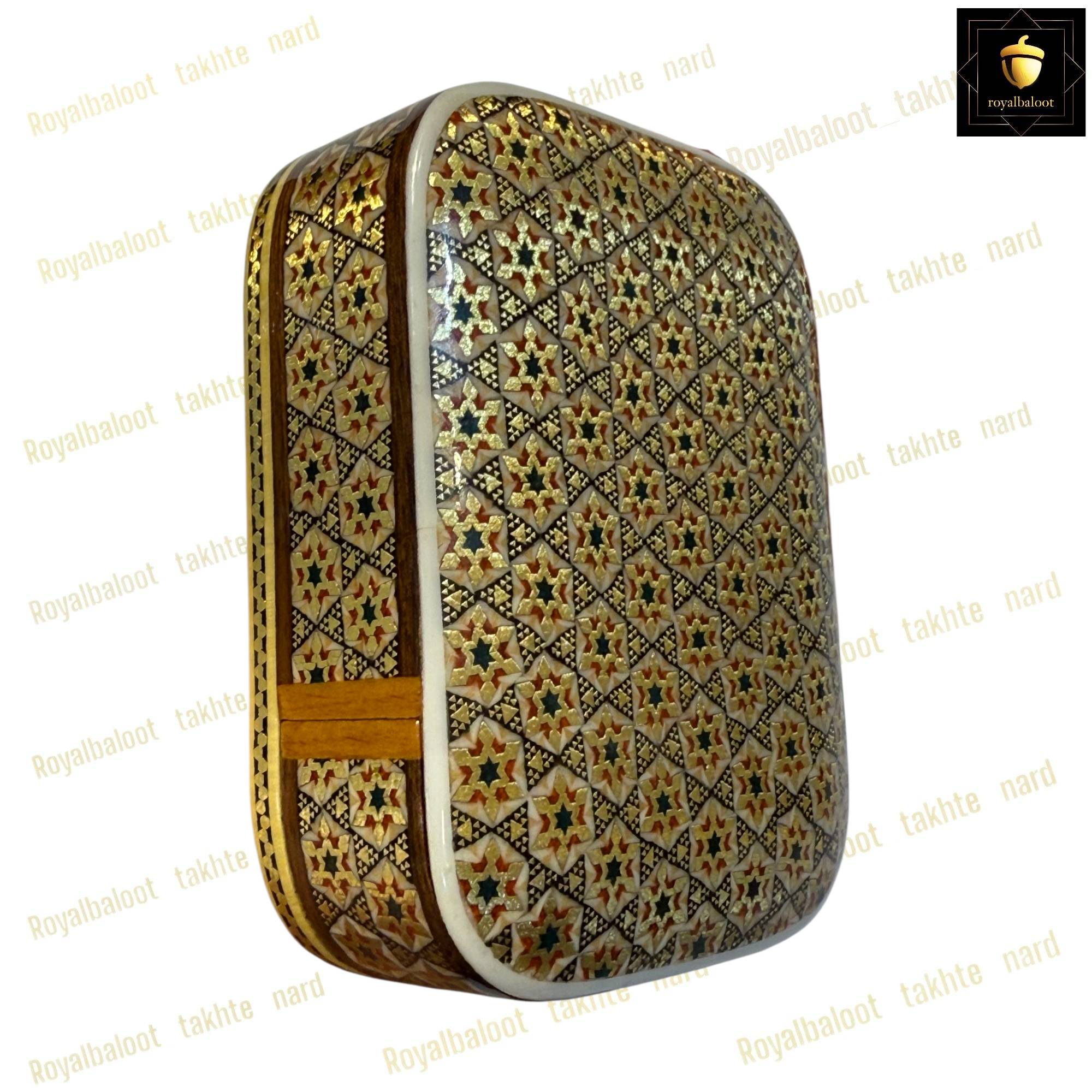 جاورقی از چوب گردو ساخته شده به صورت تمام خاتم میباشد از خاتم های پرسیم و اعلا ساخته شده به صورت کشویی میباشد به راحتی میتوانید استفاده کنید به عنوان جای ورق و جای جواهر میتوانید استفاده کنید سایز جعبه 11 در 8 و در قطر 3 سانت میباشد جعبه سه دست پلی استر دو مواد خورده که باعث براقی و زیبایی شده و همچنین پلی استر مانند پوششی عایق و لایه محافظتی روی جعبه عمل میکند مانع از نفوذ اب رطوبت خط و خش به تخته نرد میشود این جعبه ورق خاتم کاری شده یکی از زیبا ترین و ماندگار ترین اثار صنایع دستی ایرانی میباشد که با ظرافت تمام از چوب استخوان و فلز ساخته شده است روی سطح ان طرح های هندسی خاتم با ترکیب رنگ های طلایی قرمز و سبز کار شده که جلوه ای چشم نواز و ارزشمند به محصول بخشیده است ساخته شده با هنر اصیل خاتم کاری ایرانی طراحی کشویی برای استفاده اسان و ایمن مناسب برای نگهداری یک دست ورق و جواهر میباشد کیفیت بالا و دوام طولانی مدت گزینه ای زیبا برای هدیه یا استفاده شخصی میباشد این جعبه نه تنها وسیله ای کاربردی برای نگهداری ورق است بلکه یک اثر هنری اصیل ارزش تزیینی بالایی دارد و میتواند زینت بخش میز بازی یا دکور خانه باشد