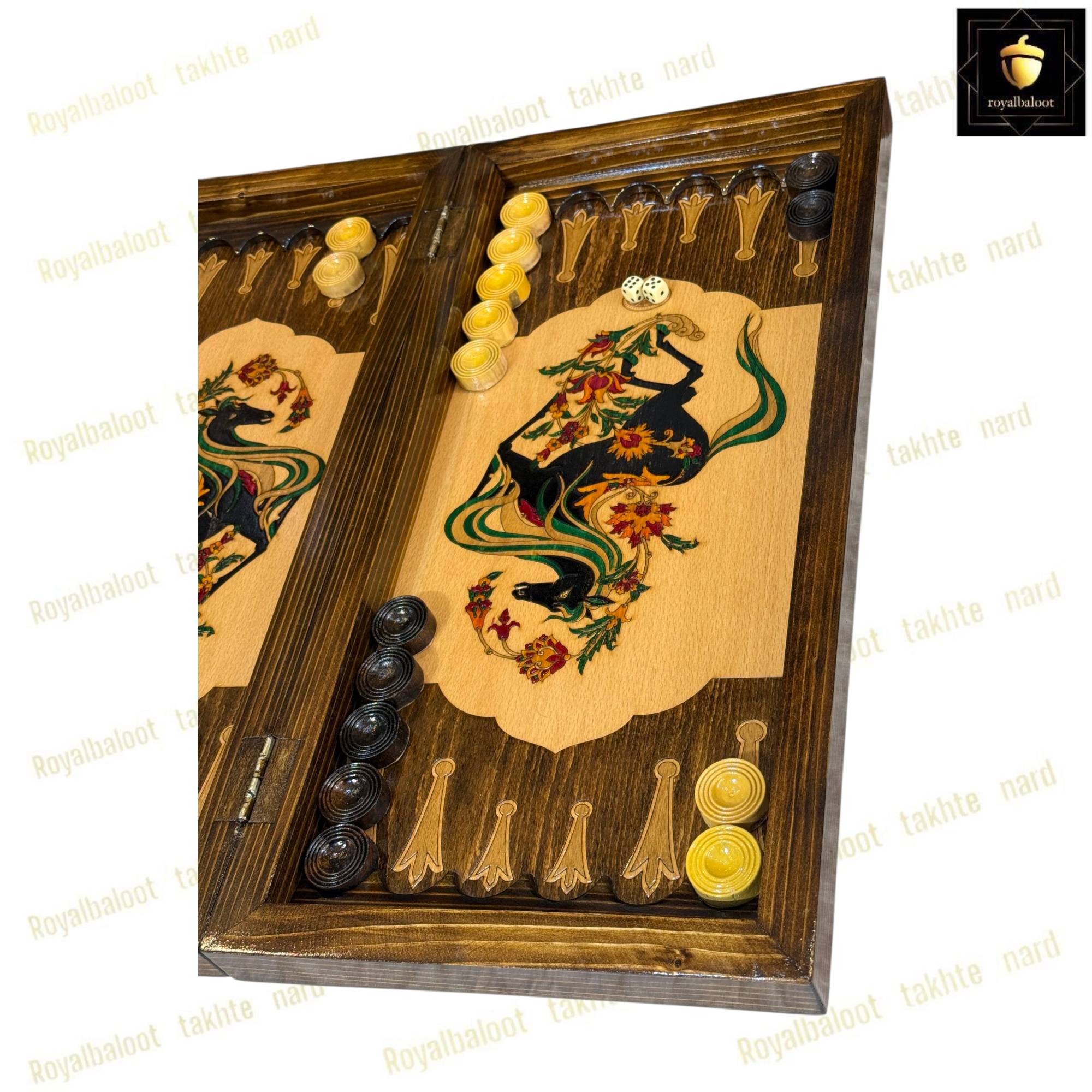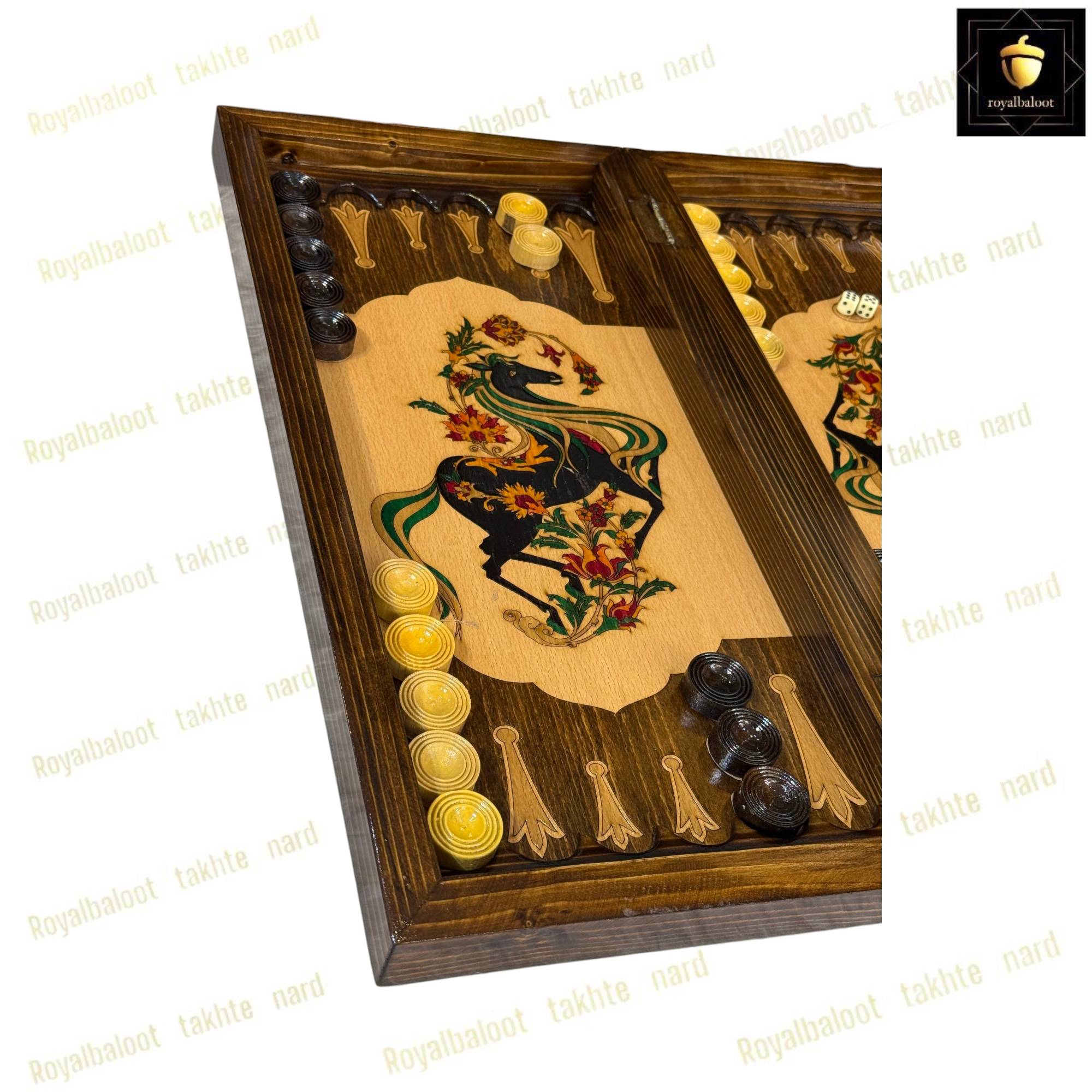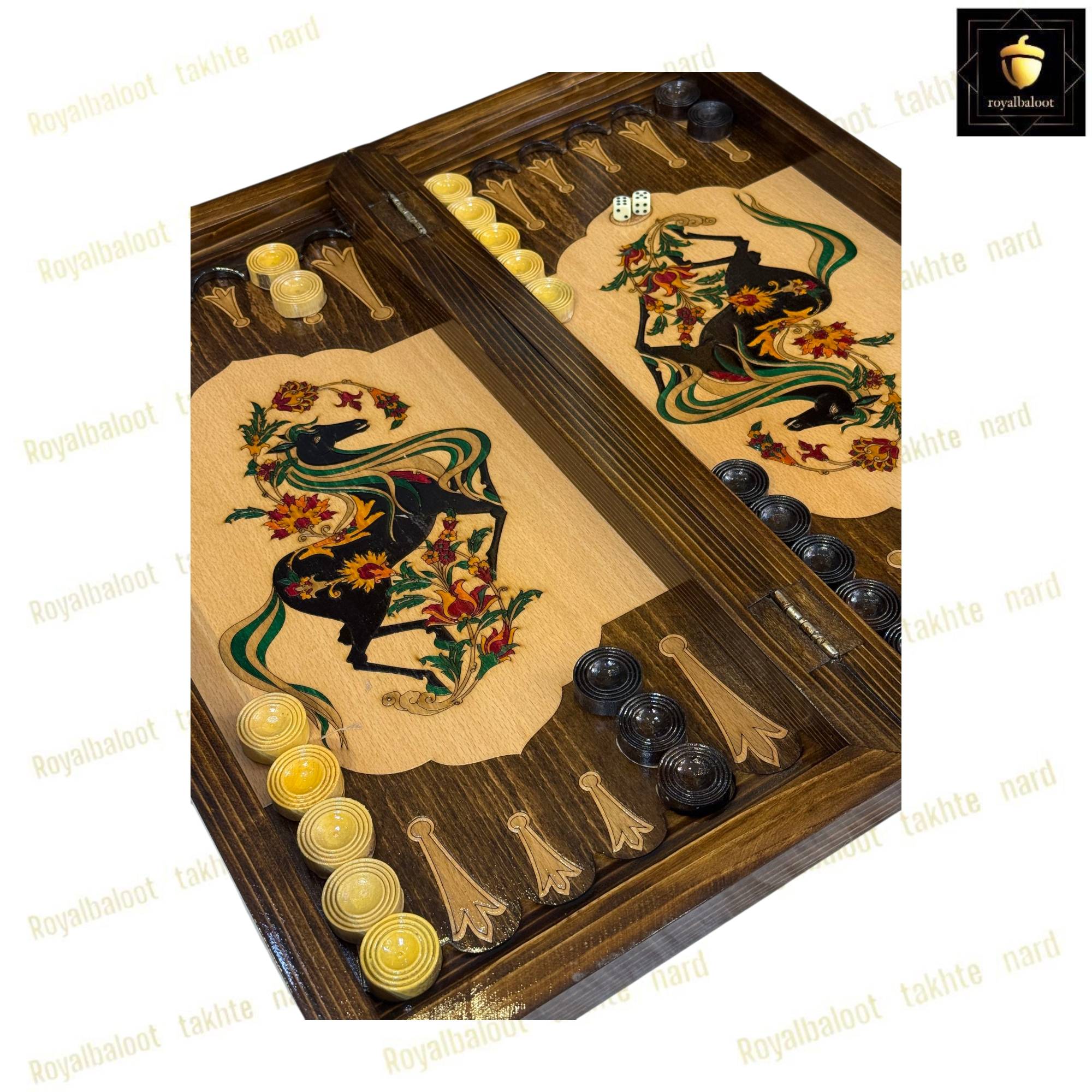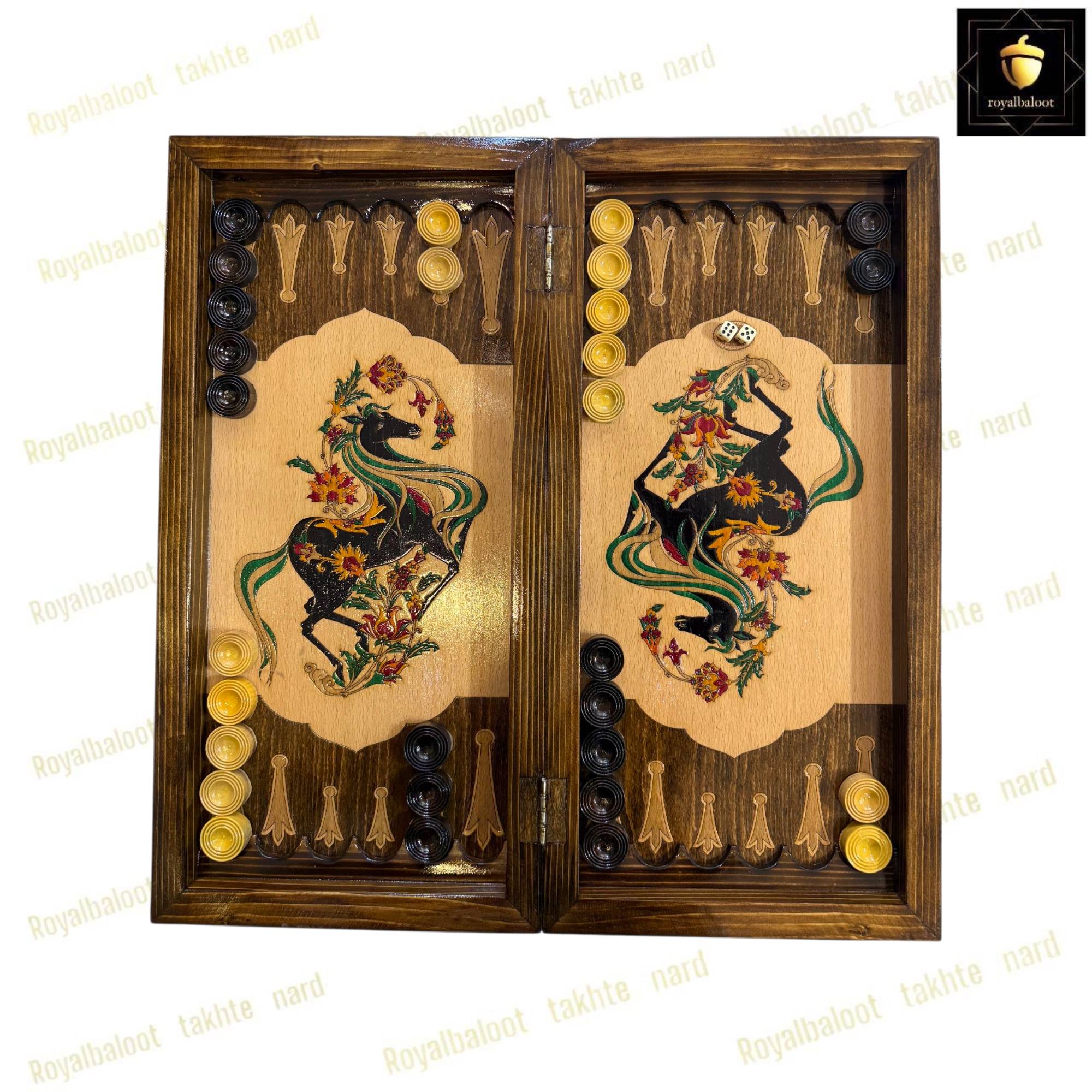 خرید تخته نرد چوب راش معرق اسب کد 444