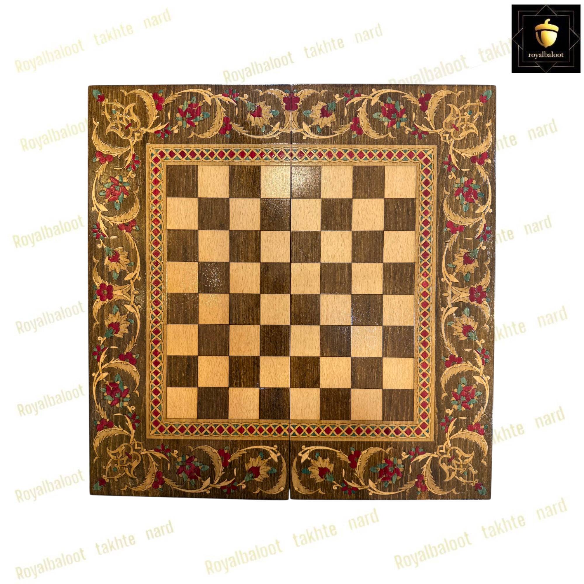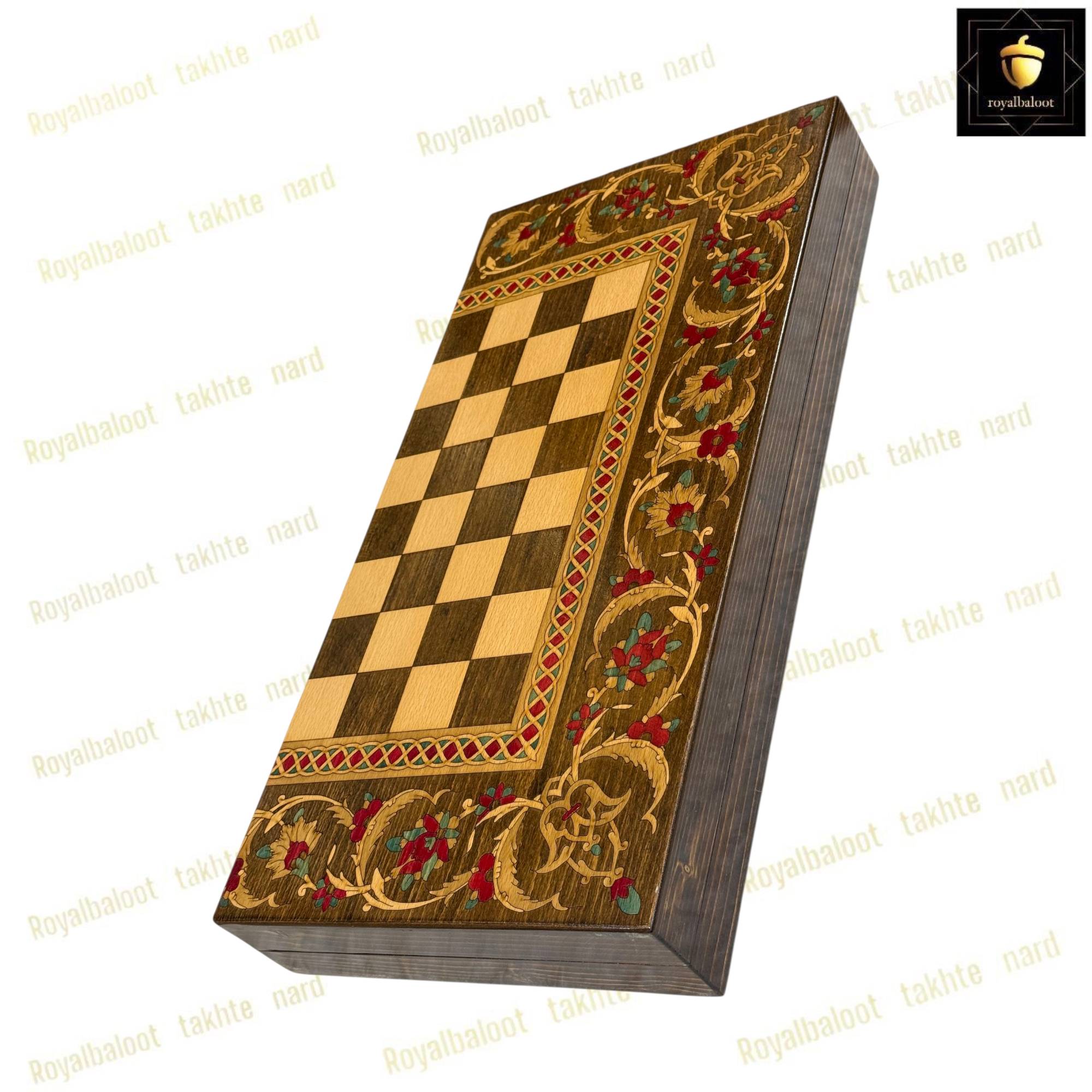 تخته نرد از چوب راش ساخته شده سایز تخته نرد 50*50 استاندارد میباشد مهره تخته نرد چوب گردو زیر پارچه تاس مالزی چرخش بالا و کاور از جمله متعلقات تخته نرد میباشد تخته نرد پلی استر خورده و کاملا براق میباشد طرح های تخته نرد به صورت معرق کار دست میباشد
