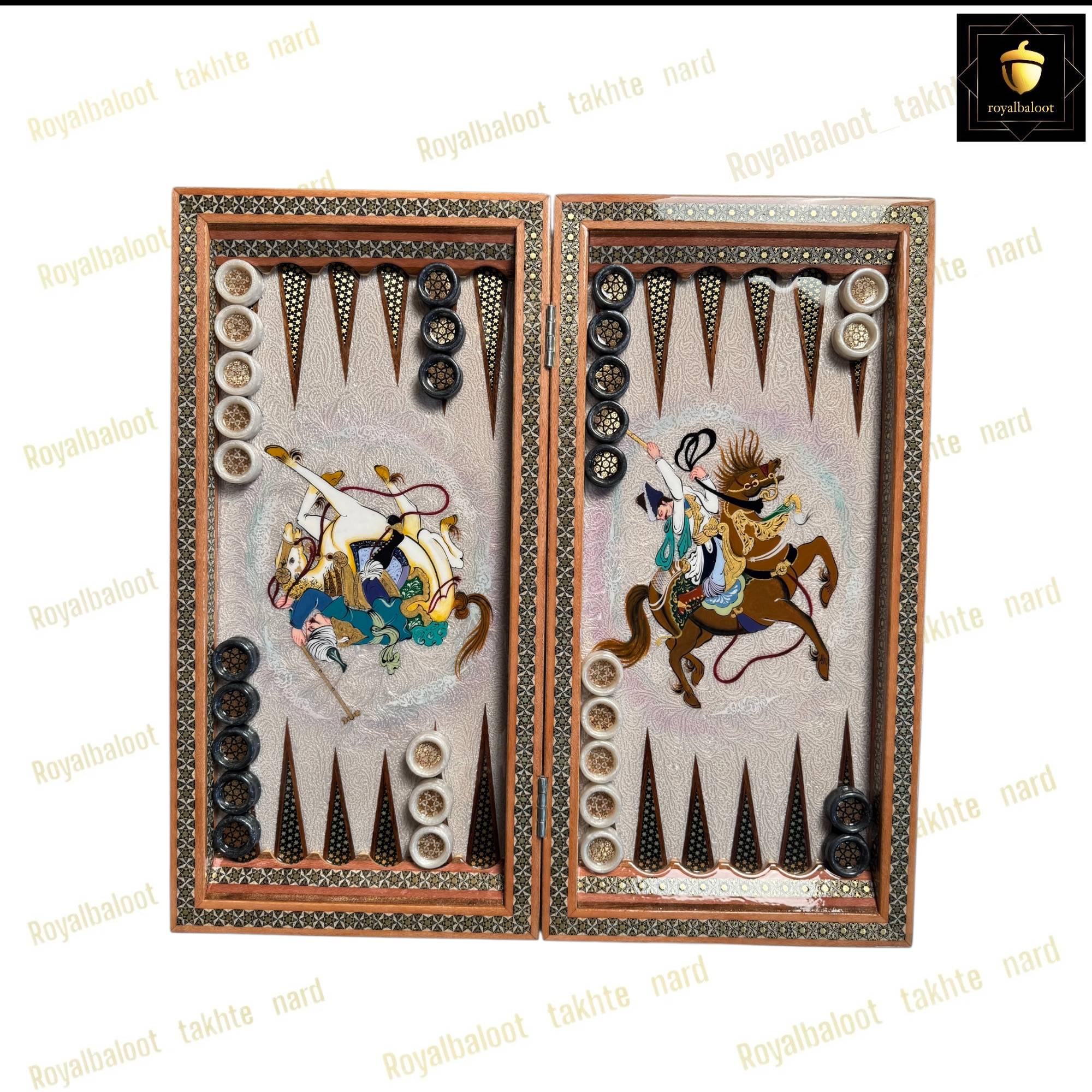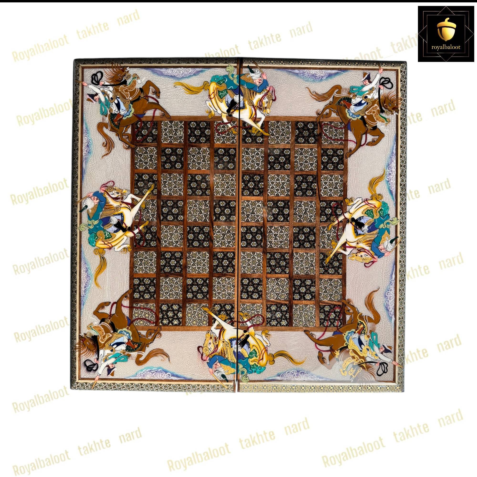 خرید تخته نرد خاتم نقاشی چوگان صدفی کد 540