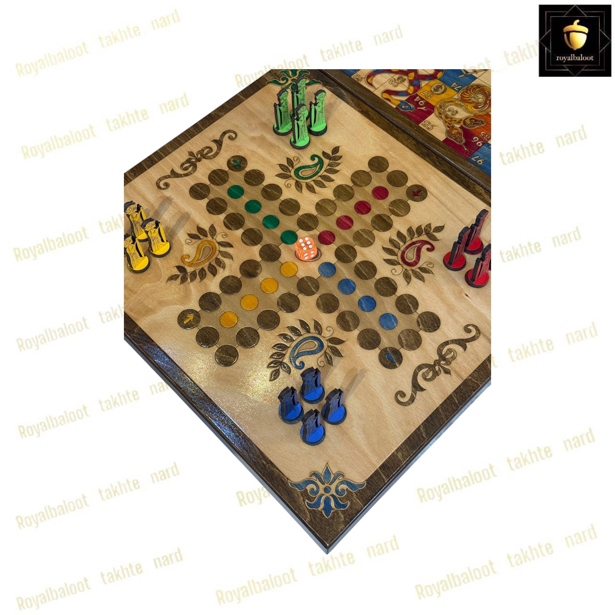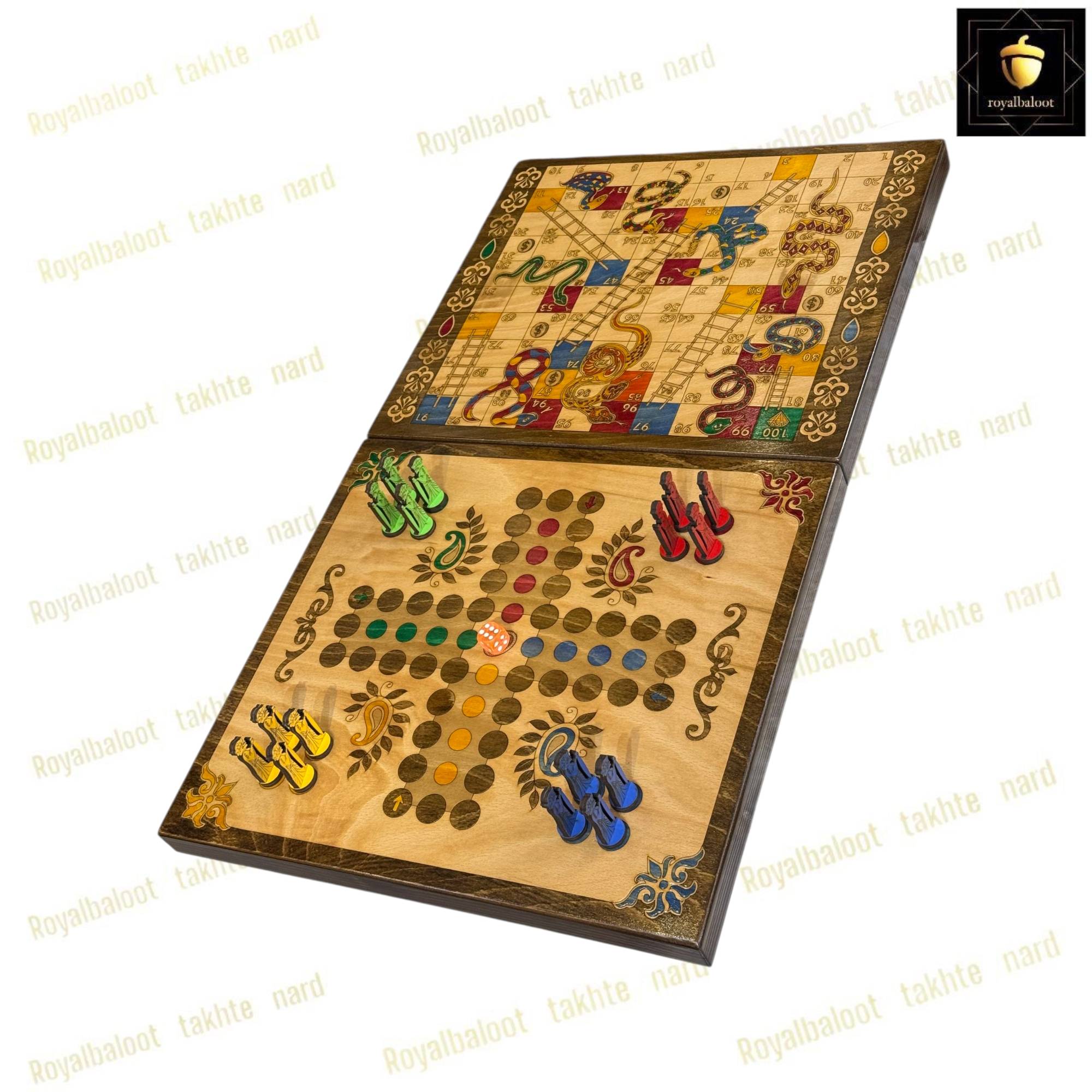سه بازی از چوب راش بسیار باکیفیت ساخته شده شامل سه بازی پرطرفدار میباشد تخته نرد منچ و مارپله تمامی طرح ها به صورت معرق کار دست میباشد و بسیار باظرافت رنگ امیزی شده دارای دو عدد لولا قوی و مخفی میباشد که بسیار راحت پک باز و بسته میشود داخل پک سه بازی تخته نرد میباشد که حتی شانه های تخته نرد از چوب راش ساخته شده در مرکز تخته نرد طرح های بسیار زیبا سنتی معرق شده پشت تخته نرد منچ و مارپله میباشد که کاملا معرق میباشد سه بازی پنج دست پلی استر خورده و کاملا براق میباشد پلی استر مانند پوششی عایق و لایه محافظتی عمل میکند مانع از نفوذ اب رطوبت و خط و خش به صفحه ها میشود مهره تخته نرد چوب گردو سایز بزرگ و استاندارد زیر پارچه تاس مالزی چرخش بالا متعلقات تخته نرد میباشد مهره منچ و مارپله چوبی مدل هخامنشی و مهره منچ و مارپله پلاستیکی و یک جفت تاس کریستالی رنگی از جمله متعلقات منچ و مارپله میباشد یک عدد کاور برای جابه جایی و حمل و نقل اسان روی پک سه بازی قرار دارد اندازه پک در حالت بسته 40*44 و در حالت باز 80*44 میباشد سه بازی از نظر ساخت بسیار اصولی میباشد و از جمله کارای صادراتی میباشد از بهترین متریال ساخته شده سه بازی های چوب راش معرق تولید مجموعه رویال بلوط به صورت تضمینی میباشد