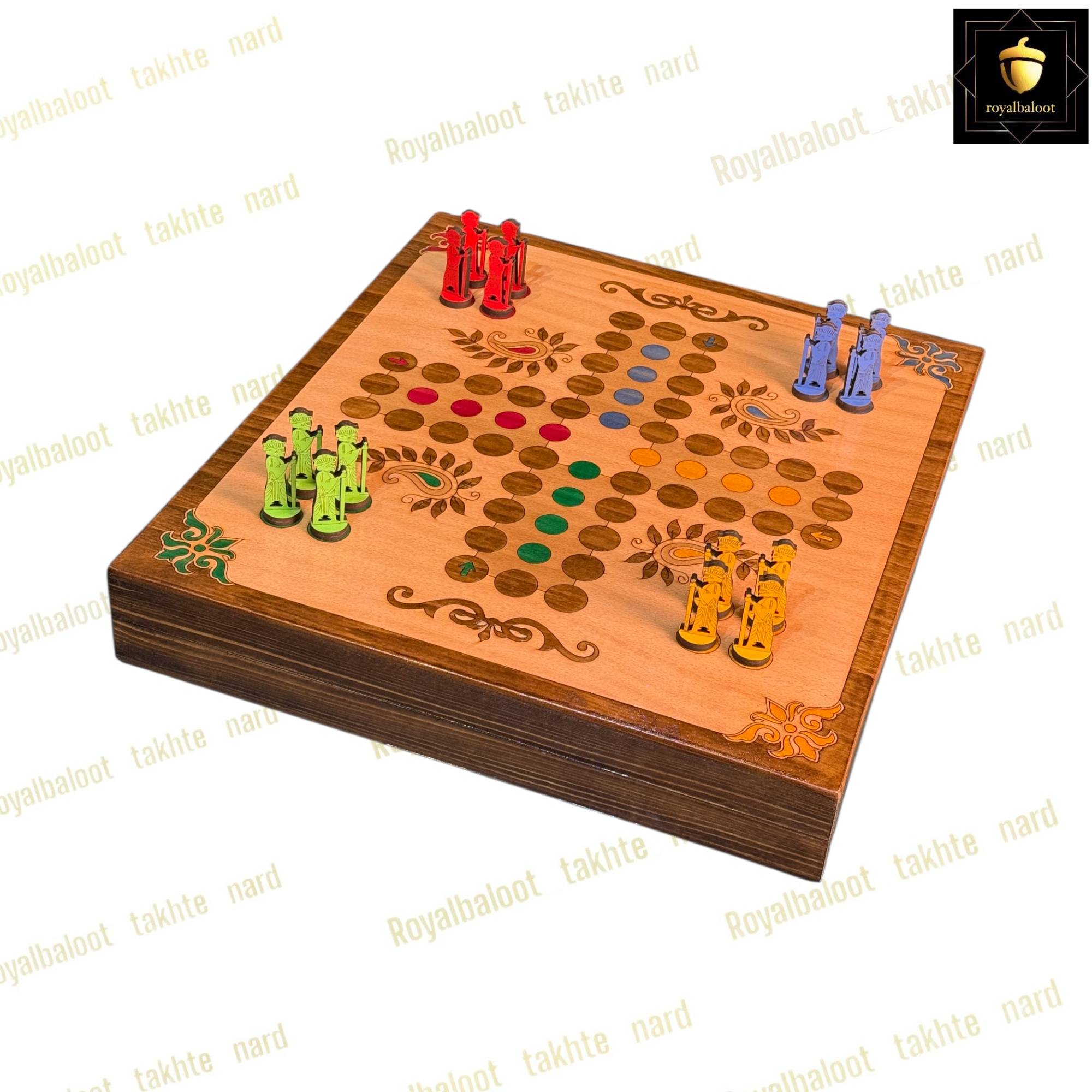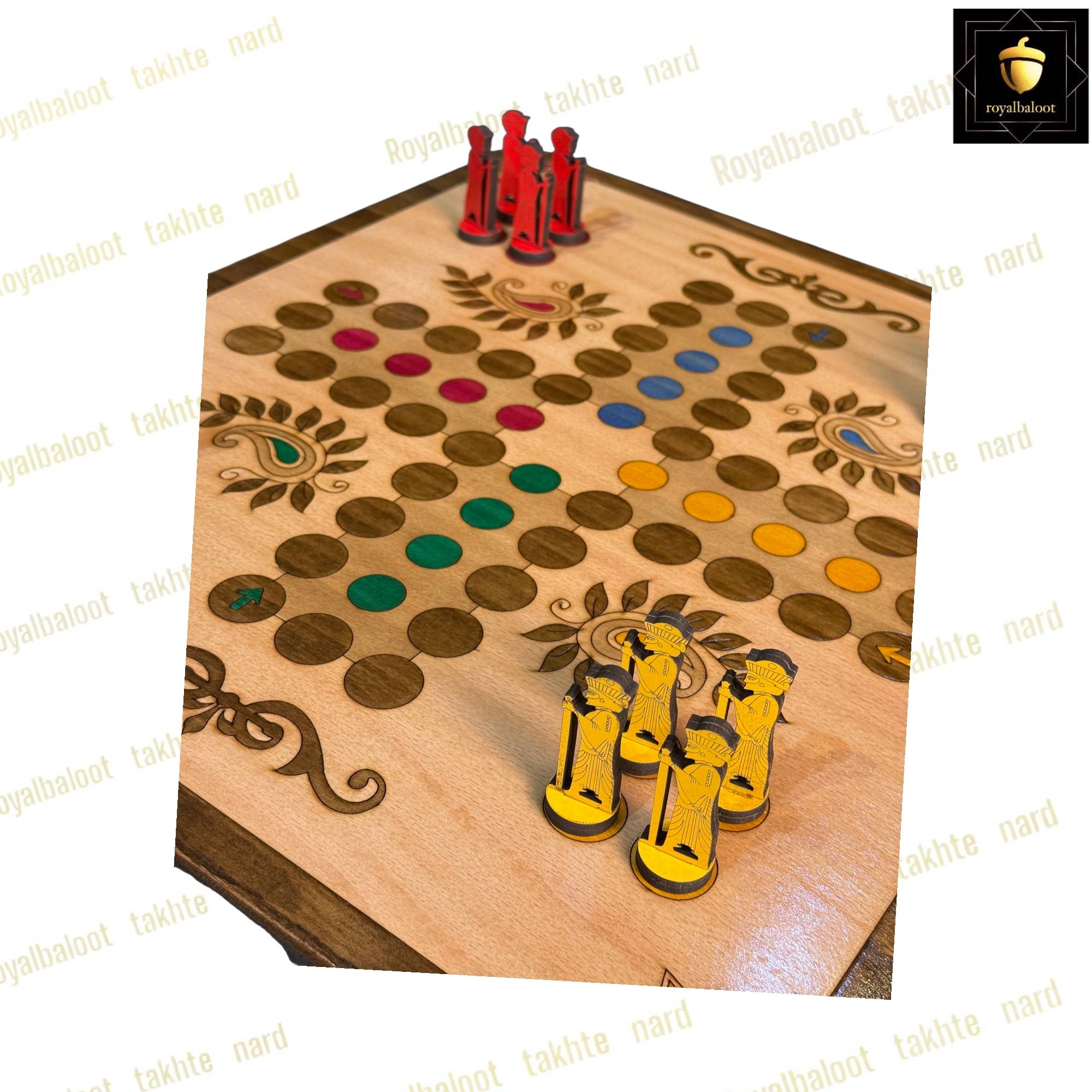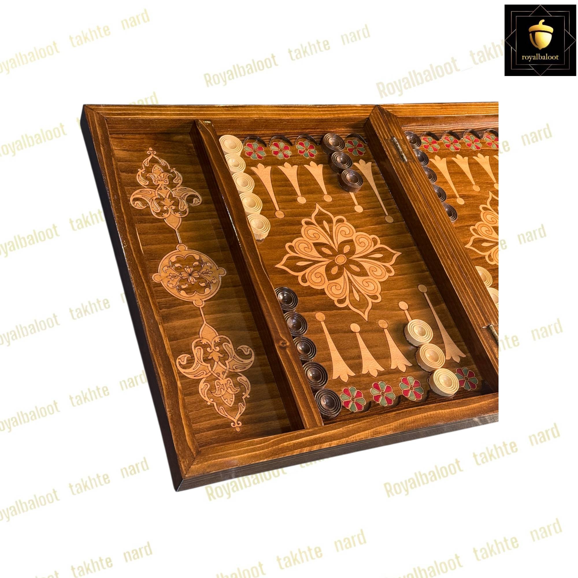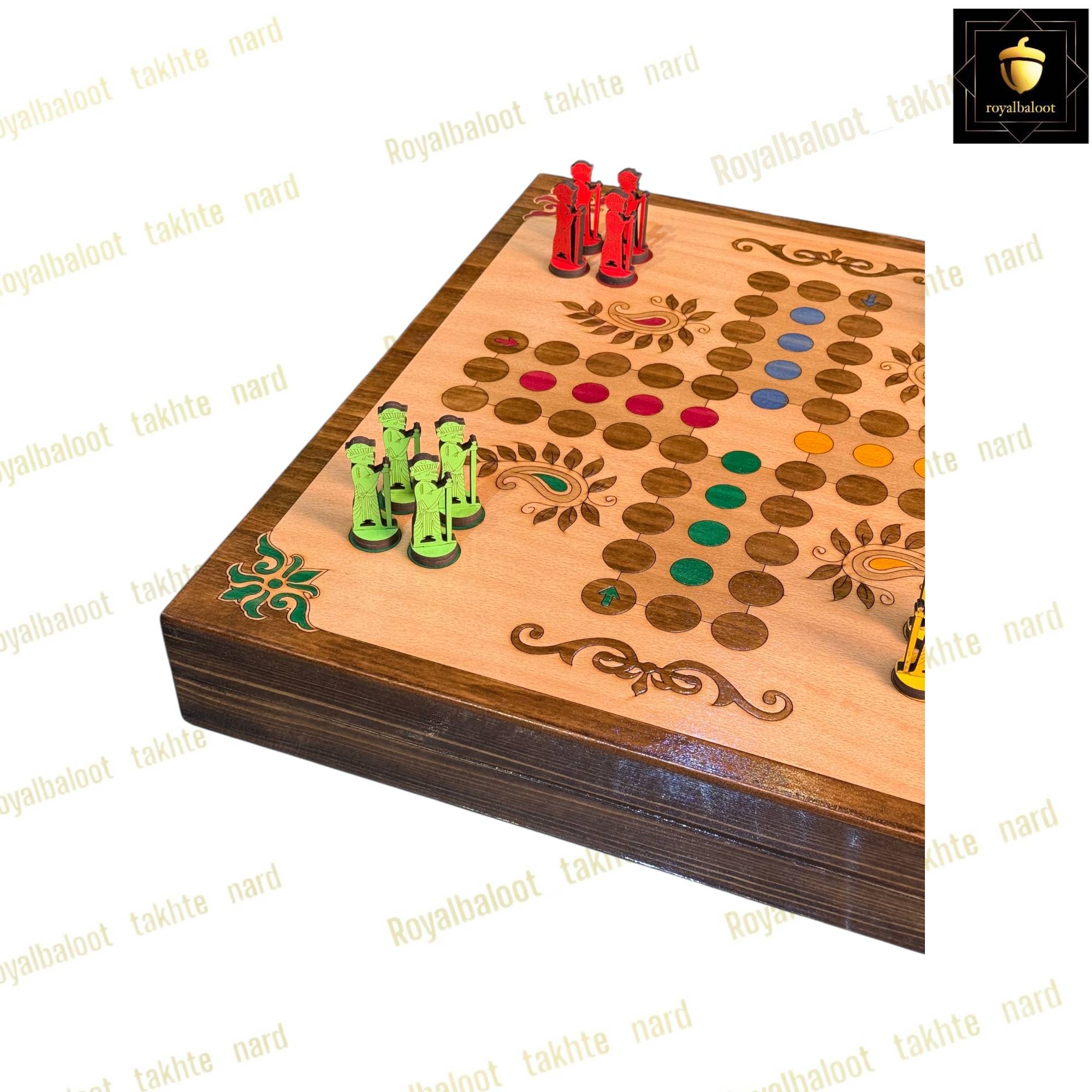 سه بازی از چوب راش ساخته شده سایز در حالت بسته 45*39 میباشد و در حالت باز 78*45 میباشد طرح ها همه معرق کار دست میباشد با دست رنگ امیزی شده شامل سه بازی تخته نرد منچ و مارپله میباشد داخل تخته نرد در مرکز طرح های سنتی و اسلیمی معرق شده همراه مهره تخته نرد چوب گردو سایز بزرگ و استاندارد زیر پارچه تاس مالزی چرخش بالا برای تخته نرد و مهره منچ و مارپله چوبی و پلاستی و تاس های کریستالی برای منچ و مارپله میباشد سه بازی پلی استر خورده و کاملا براق میباشد پلی استر مانند پوششی عایق و لایه محافظتی روی تخته نرد عمل میکند مانع از نفوذ اب رطوبت و خط و خش به تخته نرد میشود بدون اقرار میتوان گفت بترین سه بازی موجود در ایران میباشد کیفیتی در حد صادرات دارد و سایز بزرگی دارد سه بازی های چوبی معرق تولید مجموعه رویال بلوط به صورت تضمینی میباشد و ارزش بسیار بالایی دارد