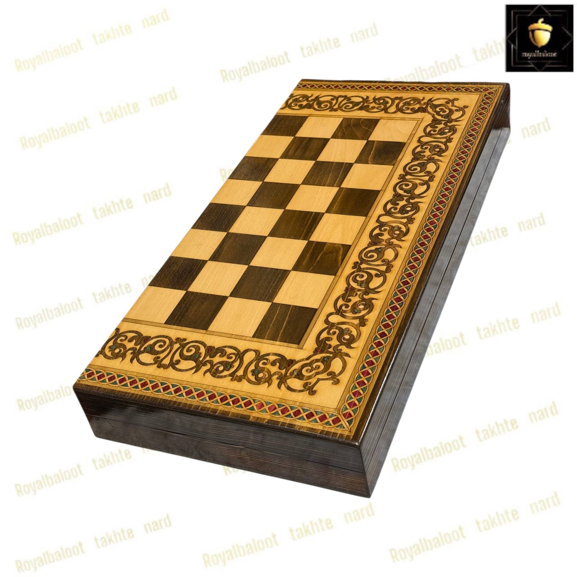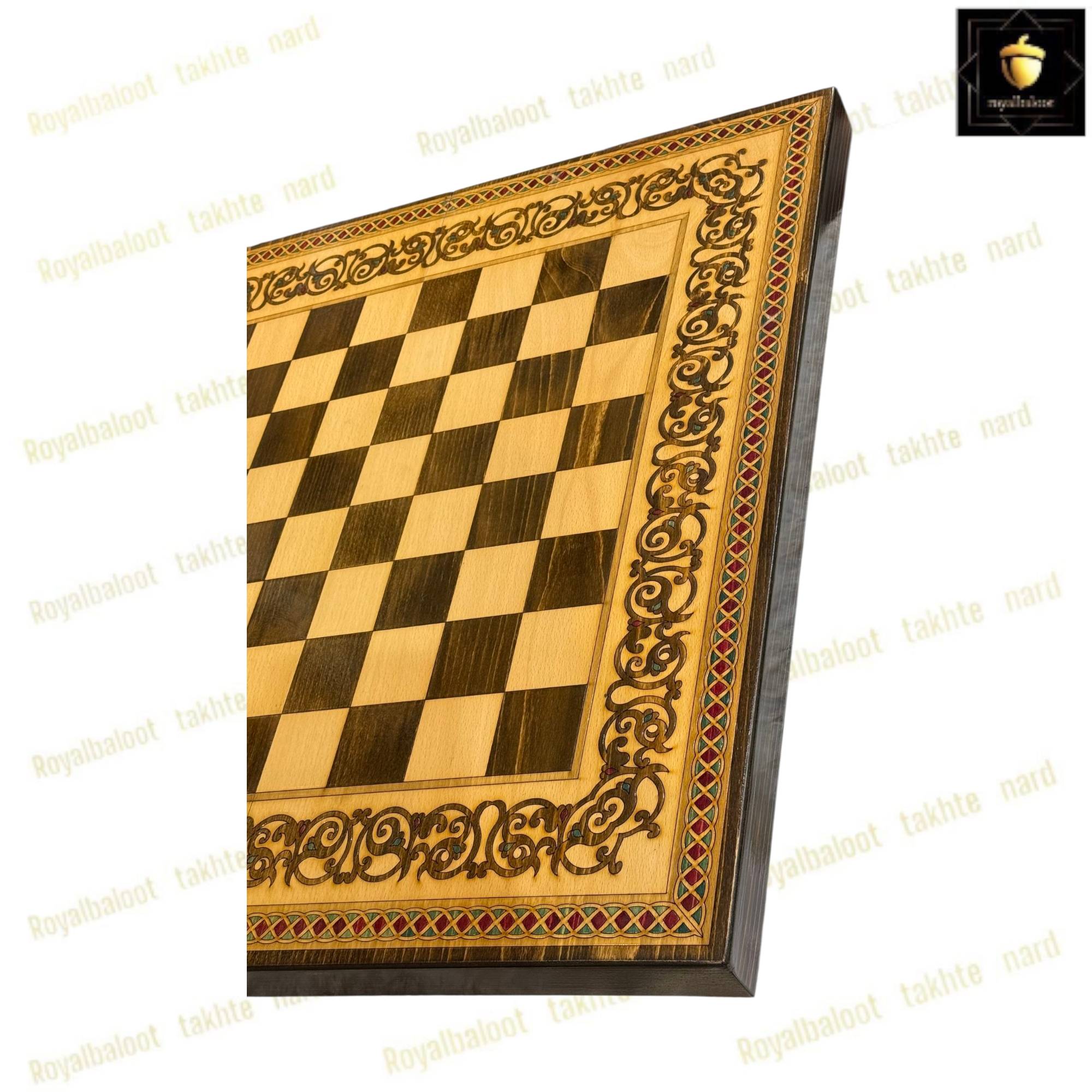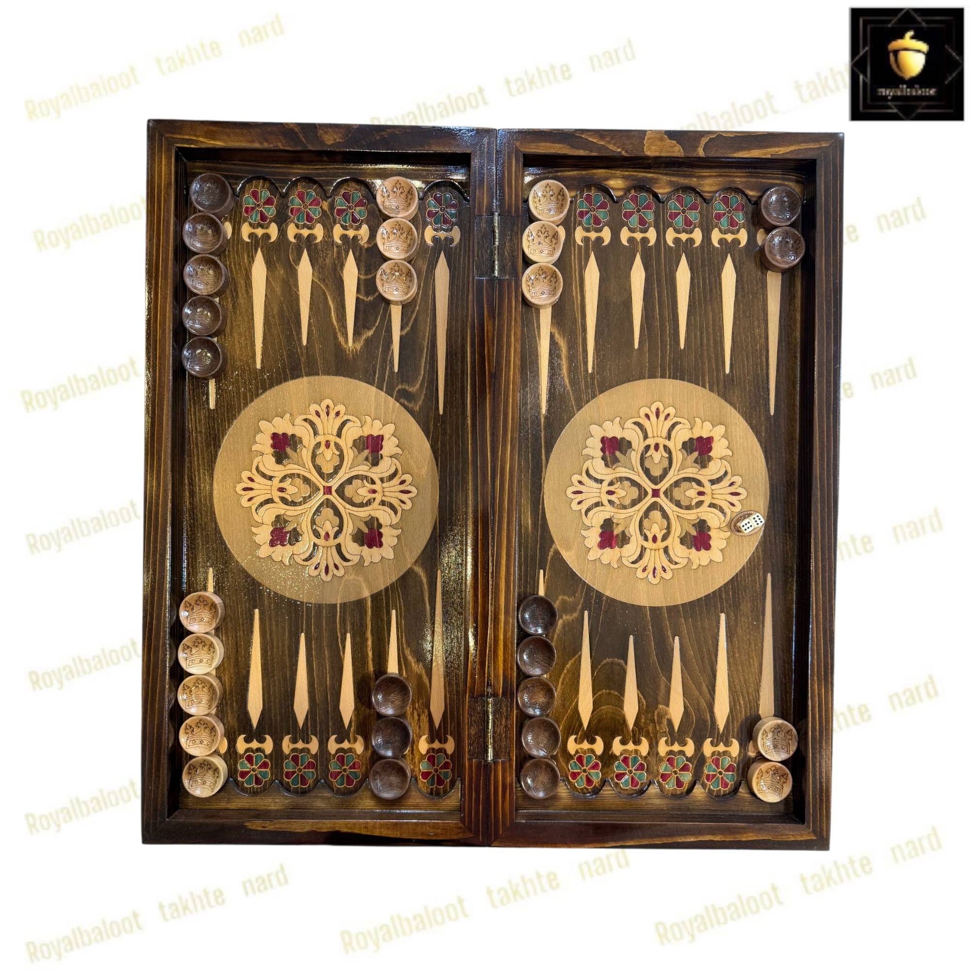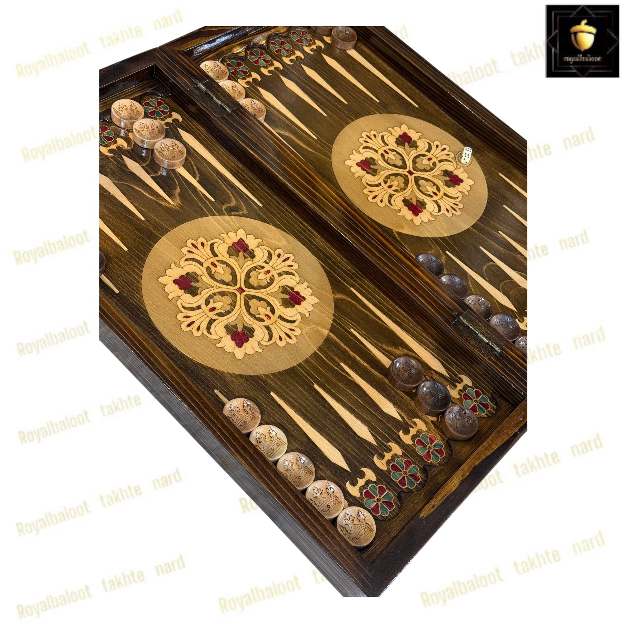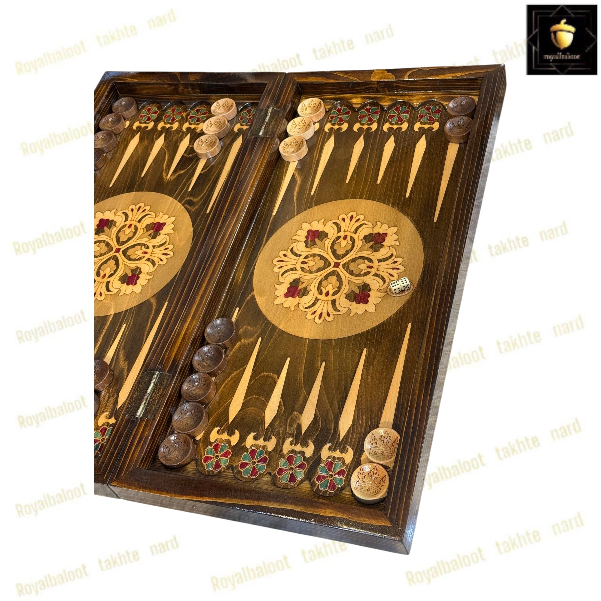 تخته نرد از چوب راش بسیار باکیفیت ساخته شده سایز تخته نرد 60 سانتی میباشد به صورت دو بازی تخته نرد و شطرنج میباشد پشت تخته نرد شطرنج میباشد خانه های شطرنج معرق و سایز استاندارد میباشد حاشیه شطرنج طرح های سنتی معرق شده داخل تخته نرد در مرکز طرح های سنتی معرق شده حتی شانه تخته نرد و جای مهره از چوب راش ساخته شده دو عدد لولا قوی مخفی برای تخته نرد طراحی شده موجب راحت باز و بسته کردن تخته نرد میشود تخته نرد پلی استر خورده و کاملا براق میباشد پلی استر پوششی عایق و لایه محافظتی روی تخته نرد میباشد مانع از نفوذ اب رطوبت و خط و خش به تخته نرد میشود مهره تخته نرد چوب گردو زیر پارچه تاس مالزی چرخش بالا و کاور از جمله متعلقات تخته نرد میباشد تخته نرد های راش معرق تولید مجموعه رویال بلوط به صورت تضمینی میباشد تخته نرد راش معرق از بهترین متریال ساخته شده در ساخت این تخته نرد کلیه اصول ساخت رعایت شده و کاملا بی نقص میباشد