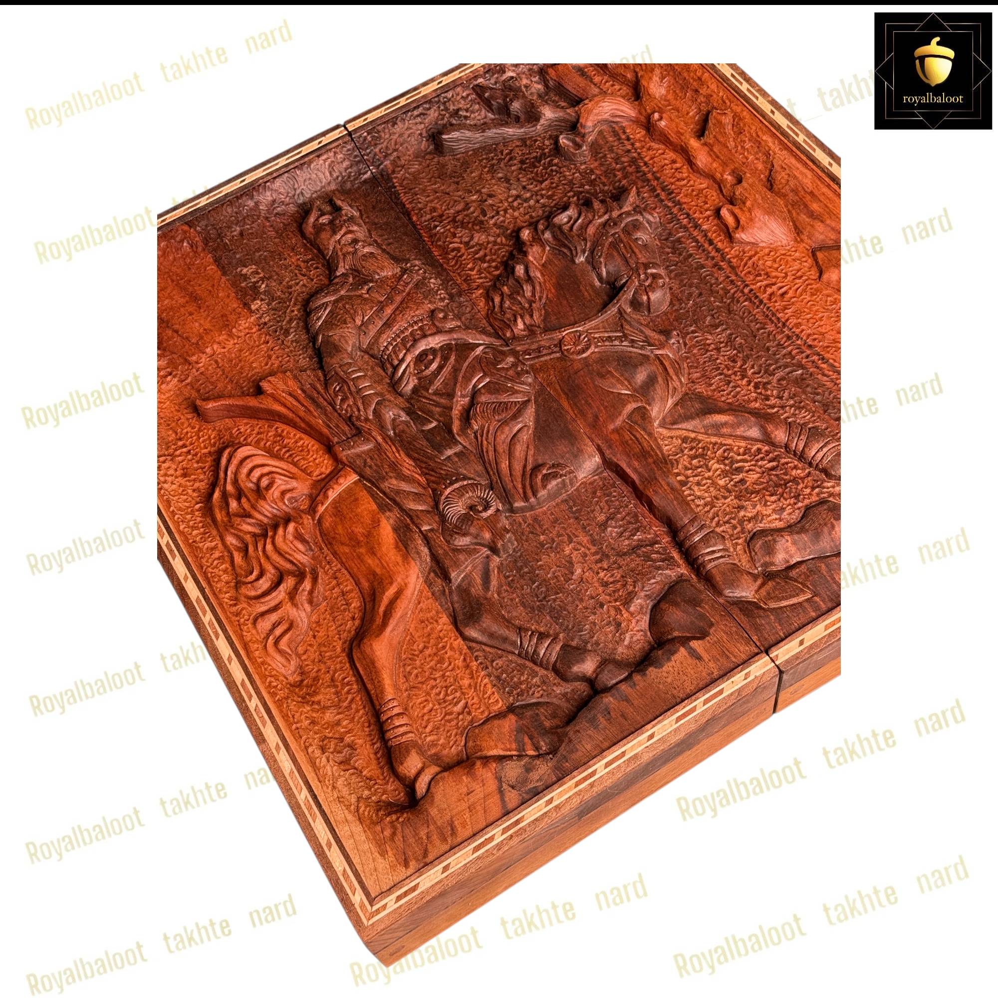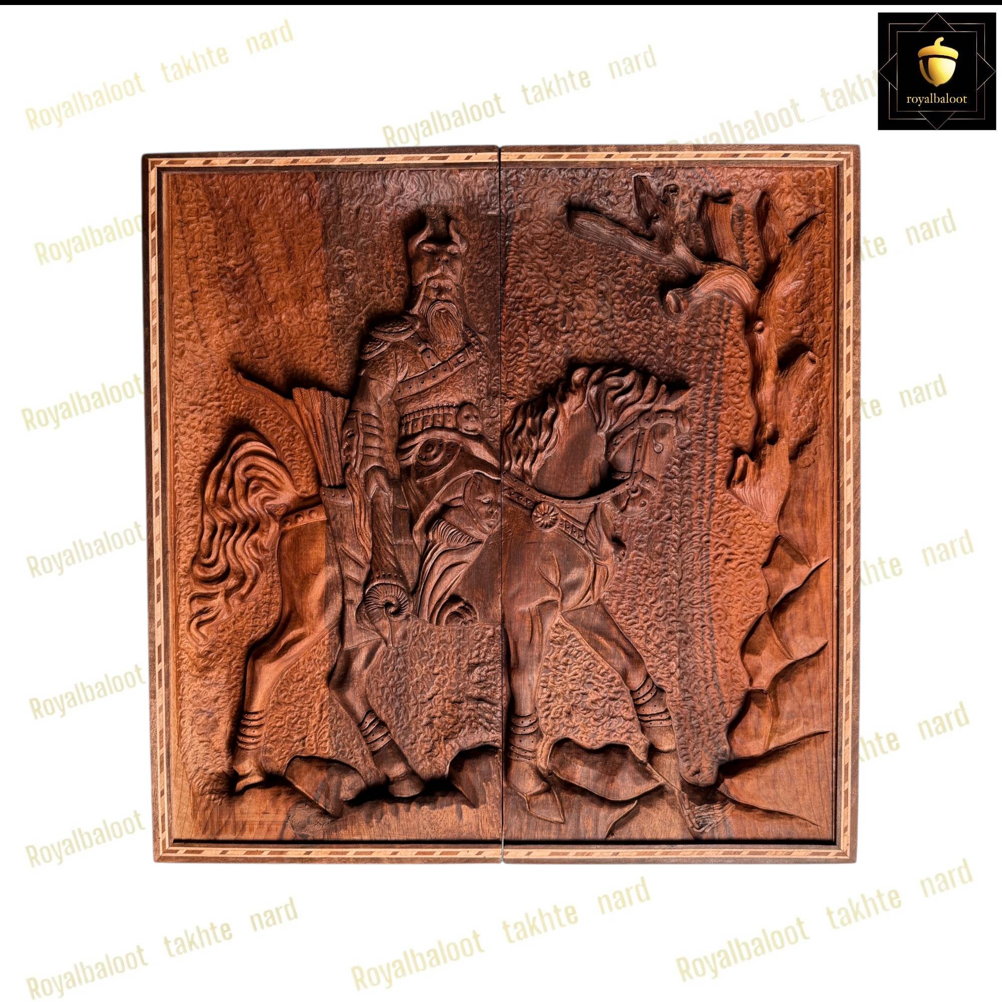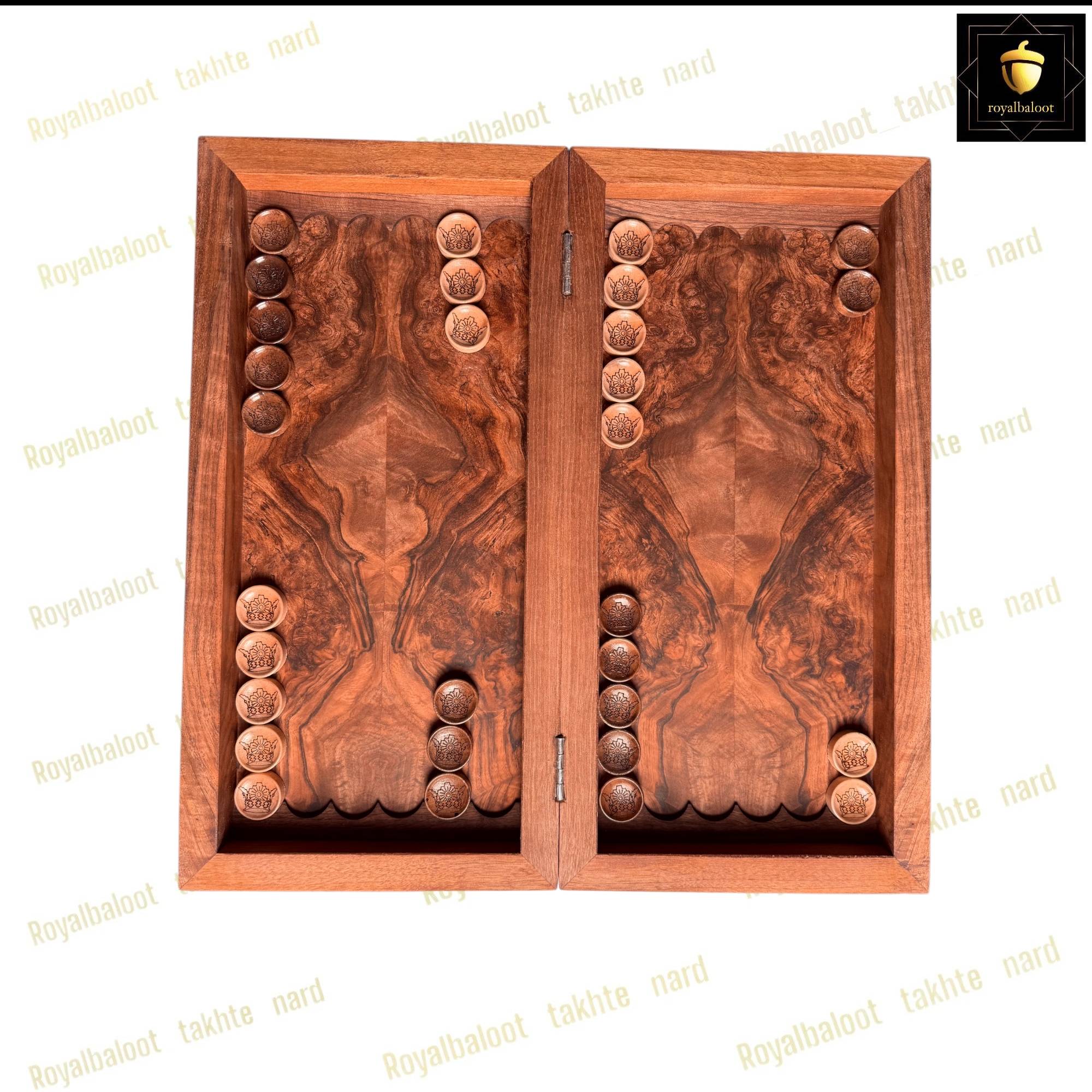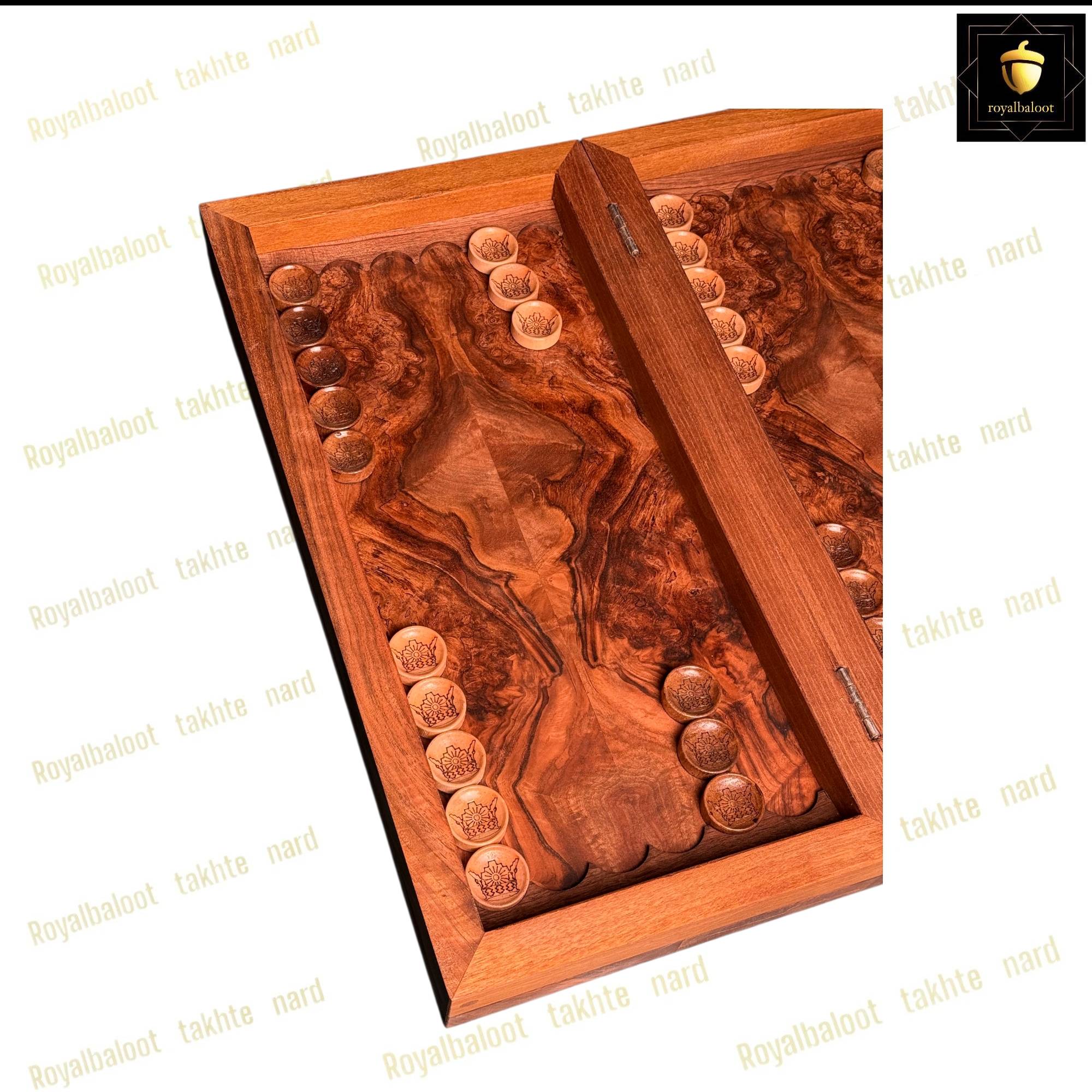 تخته نرد از چوب گردو ساخته ساخته شده سایز تخته نرد 50*50 استاندارد میباشد به صورت تک بازی تخته نرد و شطرنج میباشد داخل تخته نرد ریشه گردو بسیار پرنقش و زیبا میباشد پشت تخته نرد کامل منبت کار دست میباشد منبت طرح مرد اسب سوار بسیار پرکار و باعمق بالا میباشد حتی شانه های تخته نرد چوب گردو میباشد تخته نرد روغن هاردواکس خورده و مانند پوششی عایق و لایه محافظتی روی تخته نرد عمل میکند همراه مهره تخته نرد چوب گردو کار شده زیر پارچه تاس المانی سنگین وزن دار تاس مالزی چرخش بالا و کاور میباشد تخته نرد های گردو منبت تولید مجموعه رویال بلوط به صورت تضمینی میباشد و از بهترین متریال ساخته شده تاس روی تخته نرد های گردو چرخش بالایی دارد و مهره حرکت بهتری دارد تخته نرد های ساخته شده از چوب گردو حرفه ای ترین و بهترین نوع تخته نرد میباشند و مناسب برای تخته نرد بازان و افراد حرفه ای میباشد تخته نرد های گردو منبت به علت منبت کاری کا دست ارزش بسیار بالایی دارد و جز کالا های لوکس و صادراتی محسوب میشود و بهترین انتخاب برای سوغات خارج از کشور محسوب میشود