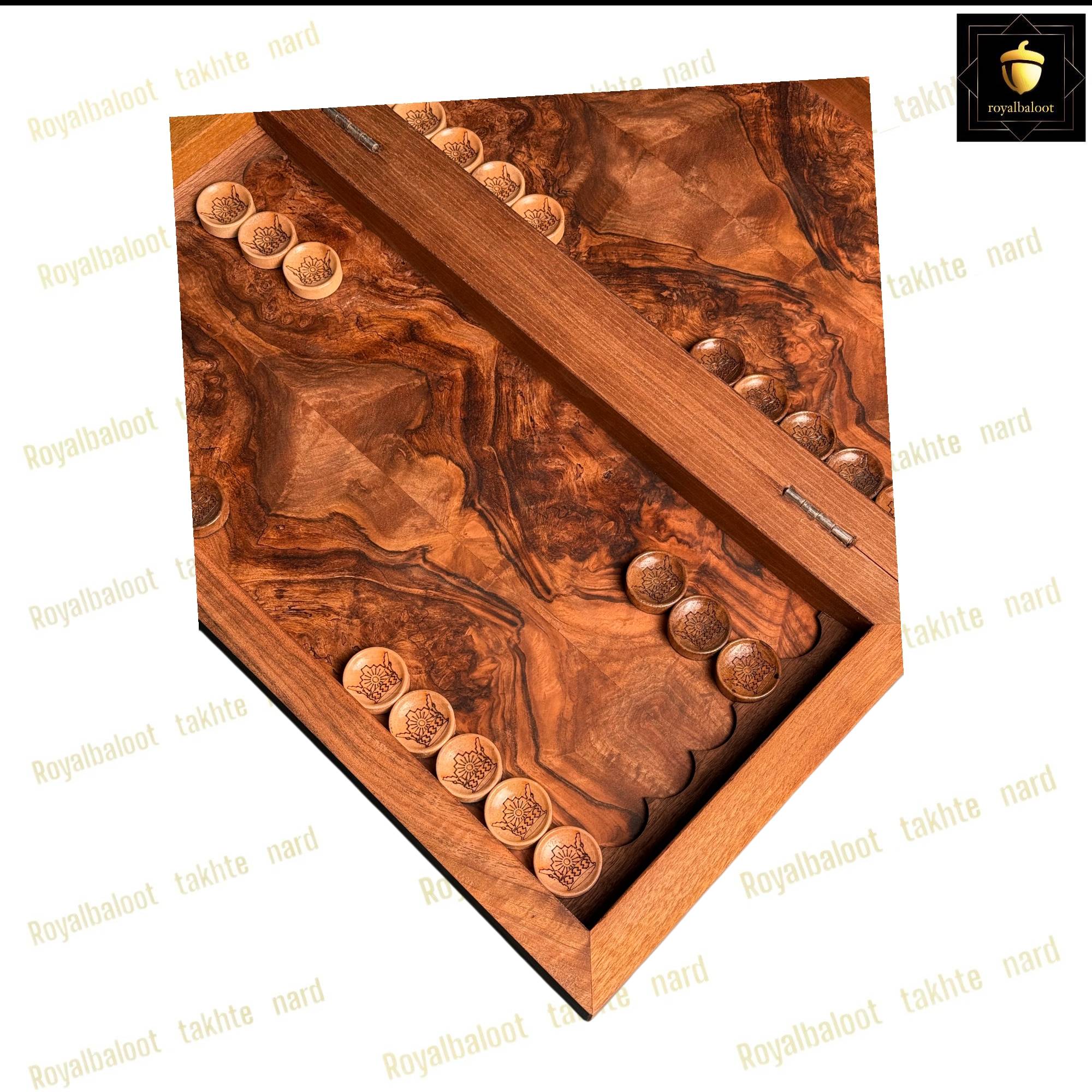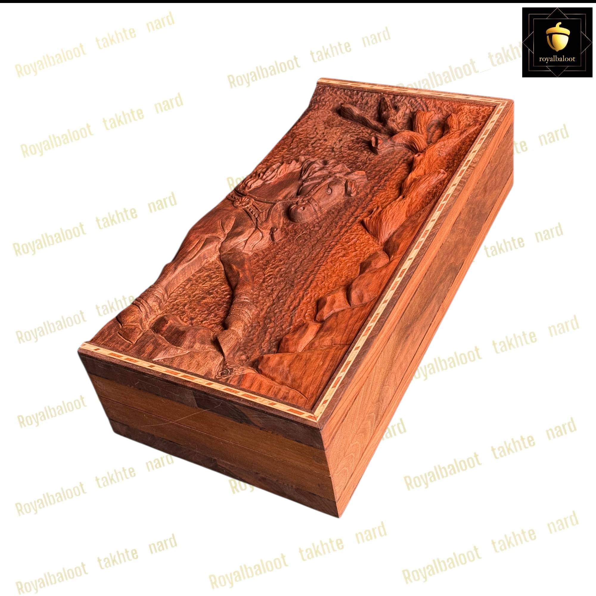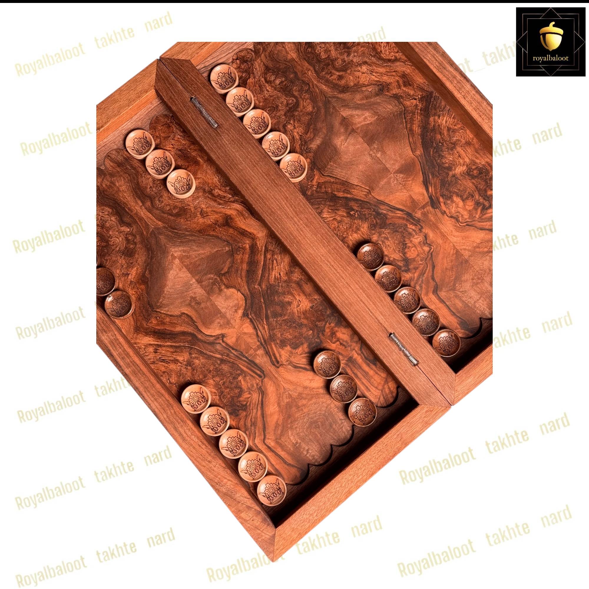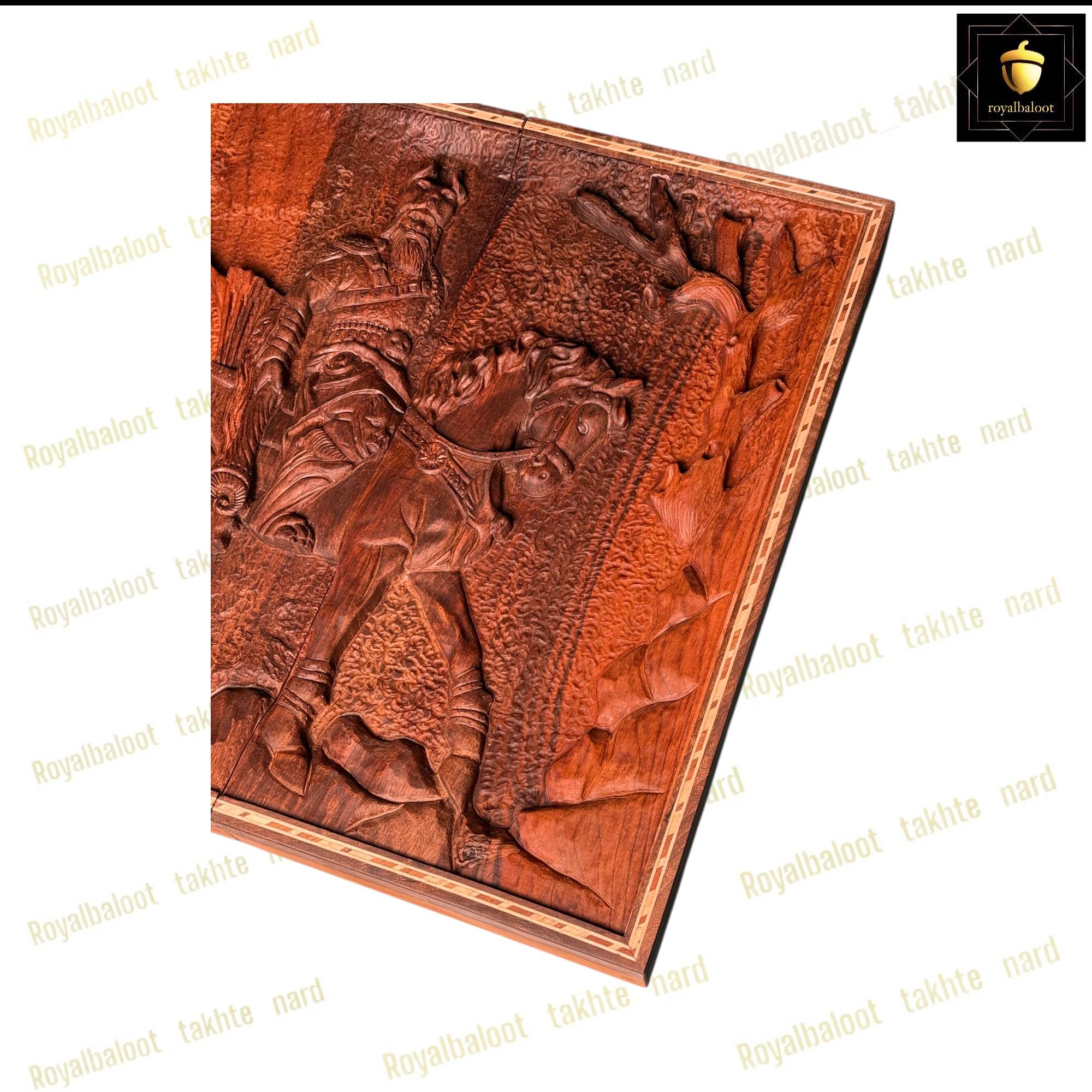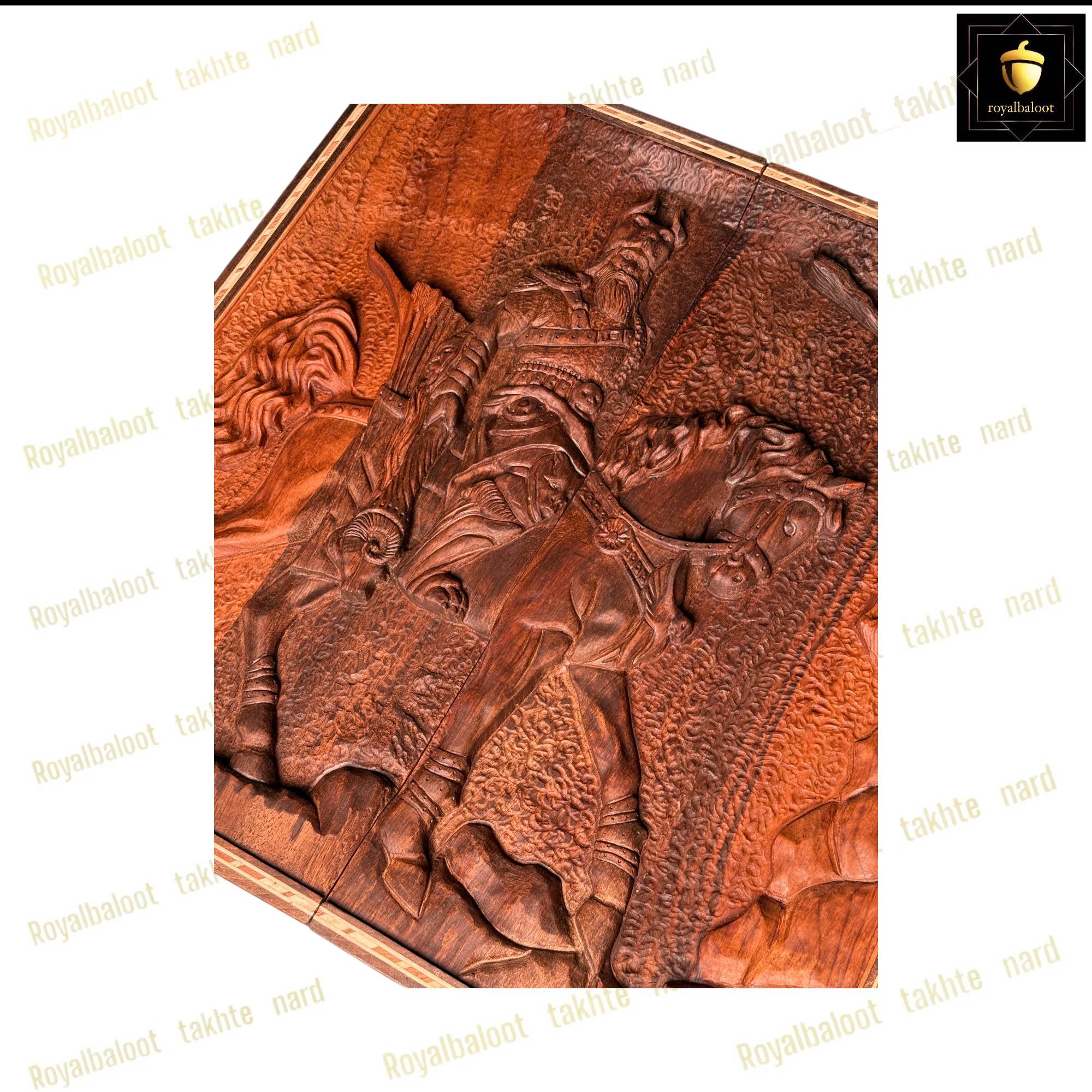 تخته نرد از چوب گردو ساخته ساخته شده سایز تخته نرد 50*50 استاندارد میباشد به صورت تک بازی تخته نرد و شطرنج میباشد داخل تخته نرد ریشه گردو بسیار پرنقش و زیبا میباشد پشت تخته نرد کامل منبت کار دست میباشد منبت طرح مرد اسب سوار بسیار پرکار و باعمق بالا میباشد حتی شانه های تخته نرد چوب گردو میباشد تخته نرد روغن هاردواکس خورده و مانند پوششی عایق و لایه محافظتی روی تخته نرد عمل میکند همراه مهره تخته نرد چوب گردو کار شده زیر پارچه تاس المانی سنگین وزن دار تاس مالزی چرخش بالا و کاور میباشد تخته نرد های گردو منبت تولید مجموعه رویال بلوط به صورت تضمینی میباشد و از بهترین متریال ساخته شده تاس روی تخته نرد های گردو چرخش بالایی دارد و مهره حرکت بهتری دارد تخته نرد های ساخته شده از چوب گردو حرفه ای ترین و بهترین نوع تخته نرد میباشند و مناسب برای تخته نرد بازان و افراد حرفه ای میباشد تخته نرد های گردو منبت به علت منبت کاری کا دست ارزش بسیار بالایی دارد و جز کالا های لوکس و صادراتی محسوب میشود و بهترین انتخاب برای سوغات خارج از کشور محسوب میشود