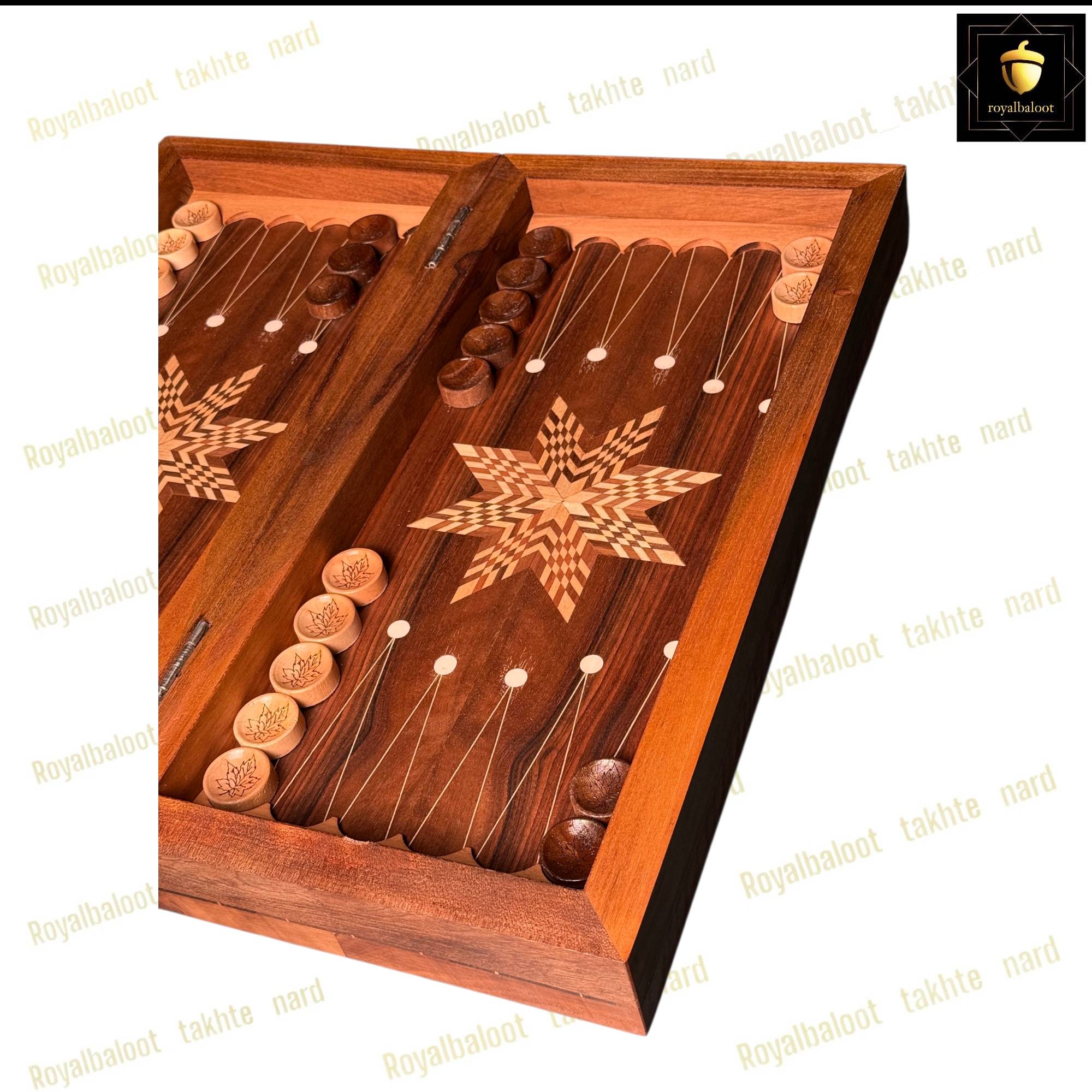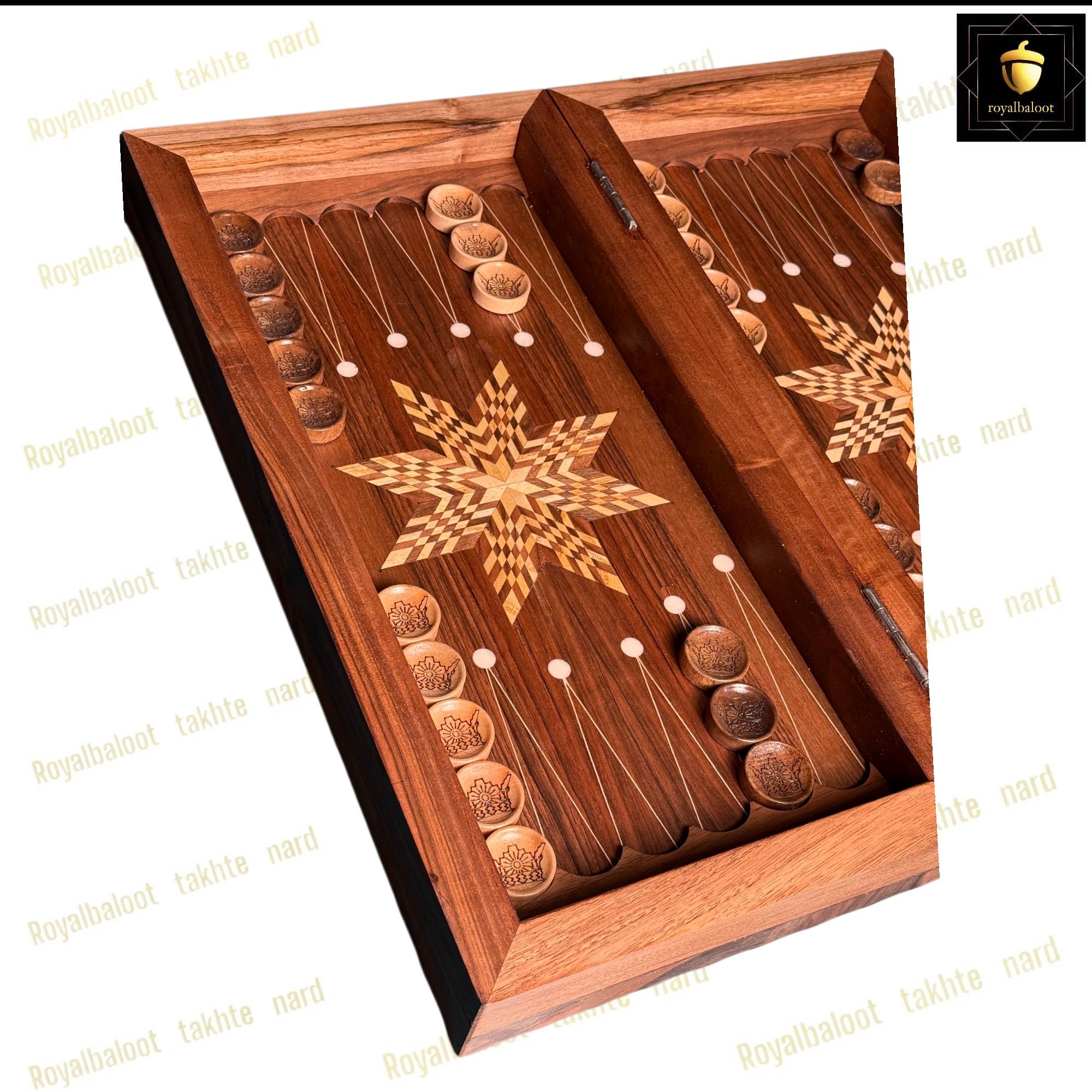 تخته نرد از چوب گردو ساخته شده سایز تخته نرد 50*50 استاندارد میباشد همراه مهره تخته نرد چوب گردو زیر پارچه کار شده تاس المانی سنگین وزن دار تاس مالزی چرخش بالا و کاور میباشد تخته نرد روغن هاردواکس خورده
