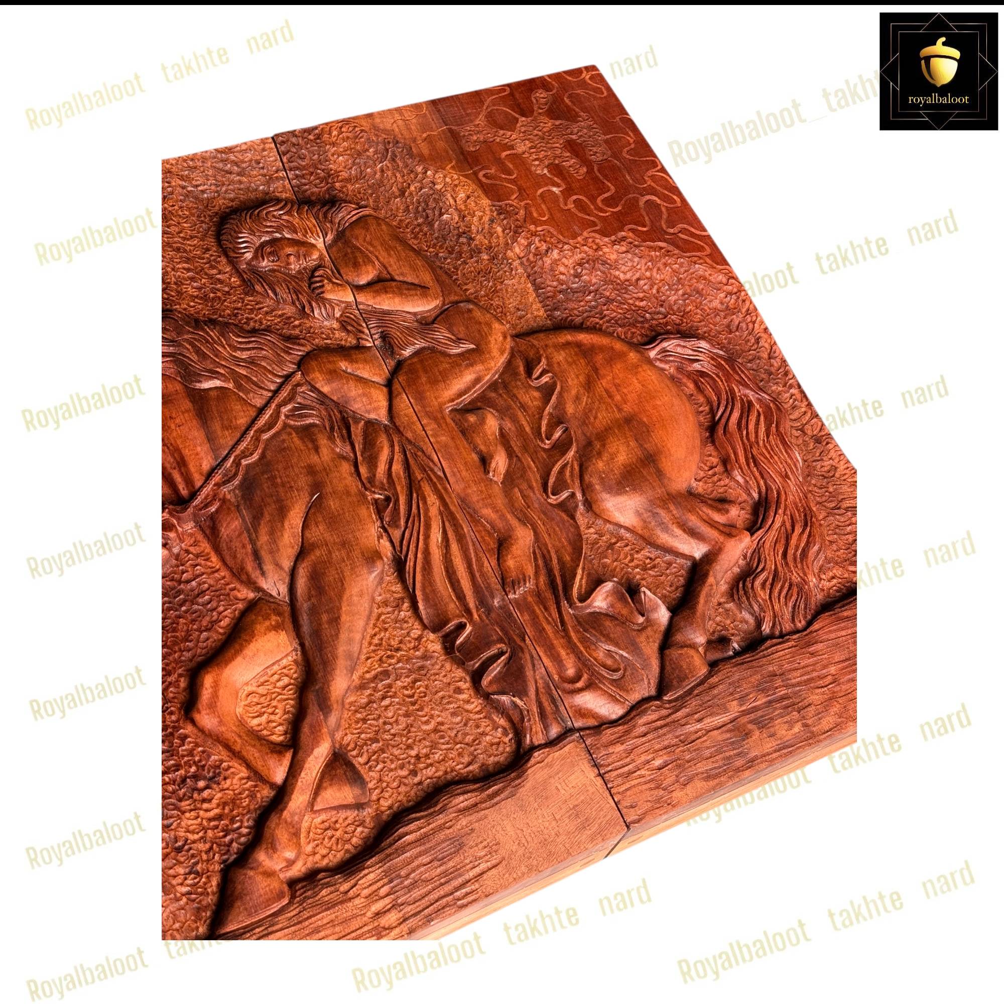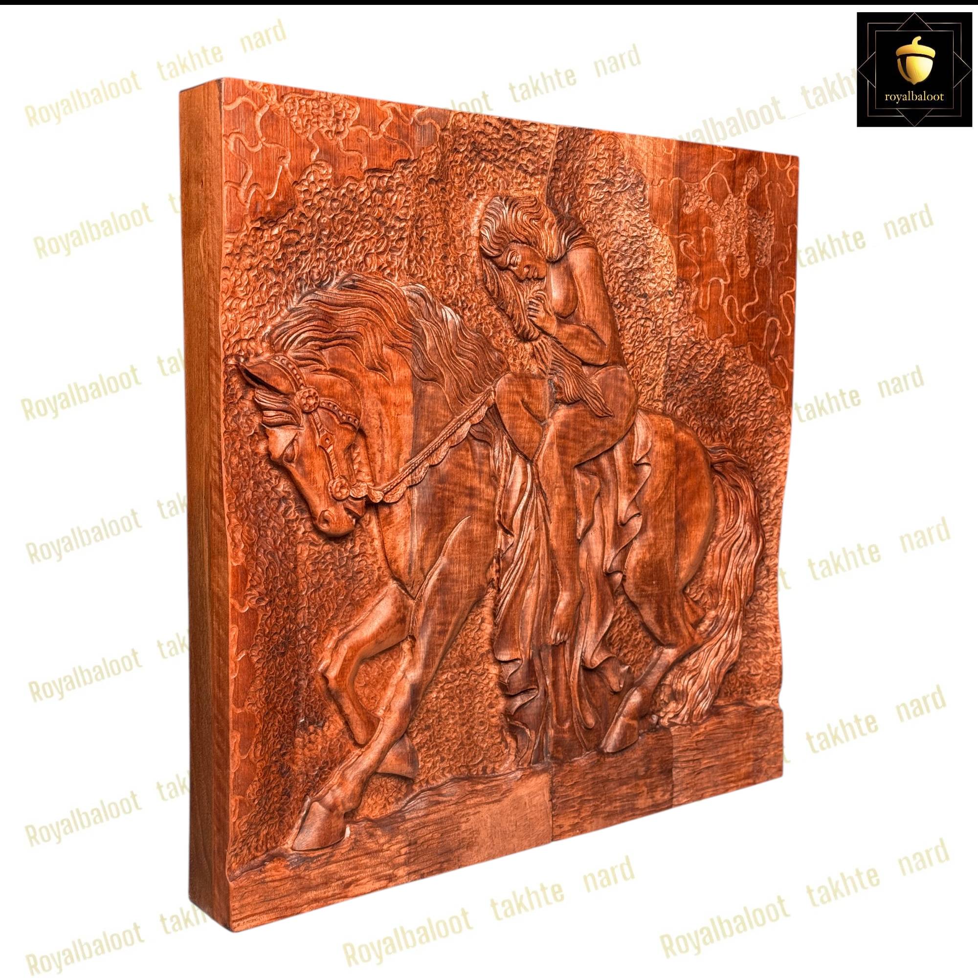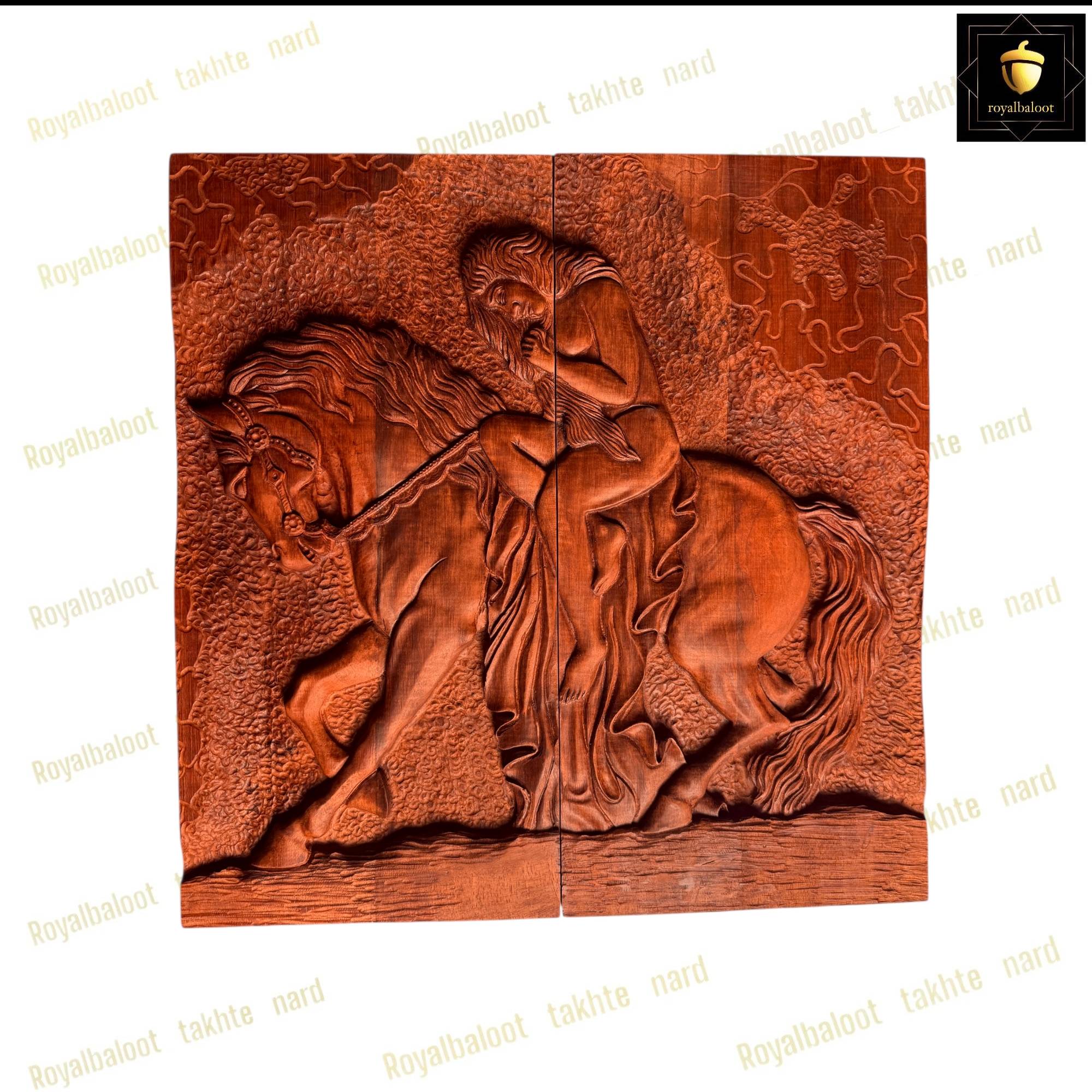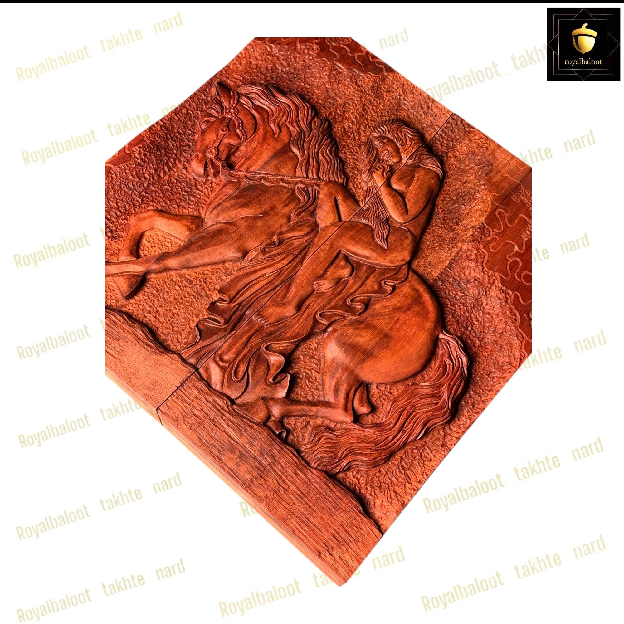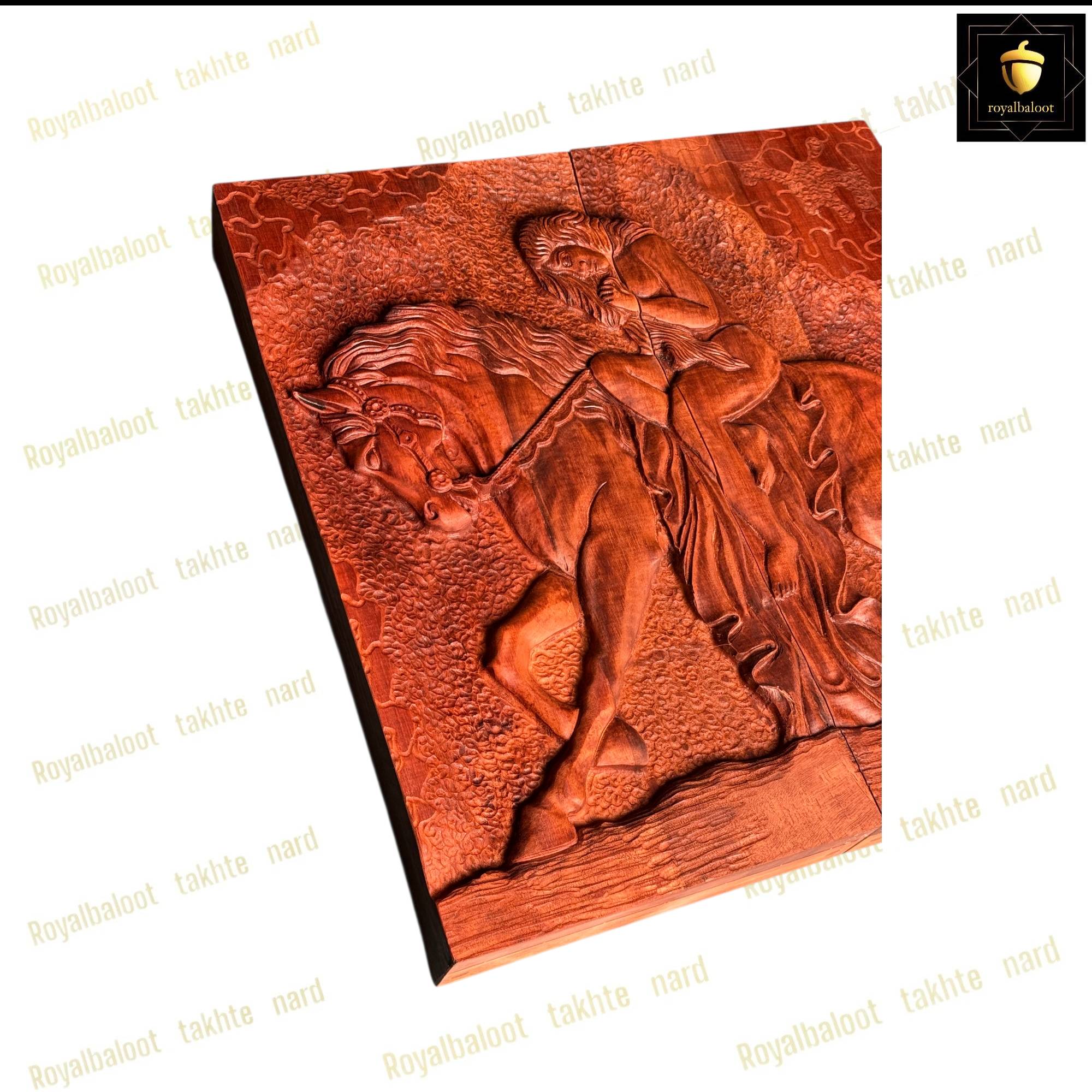 خرید تابلو تخته نرد گردو منبت دختر اسب سوار کد 535