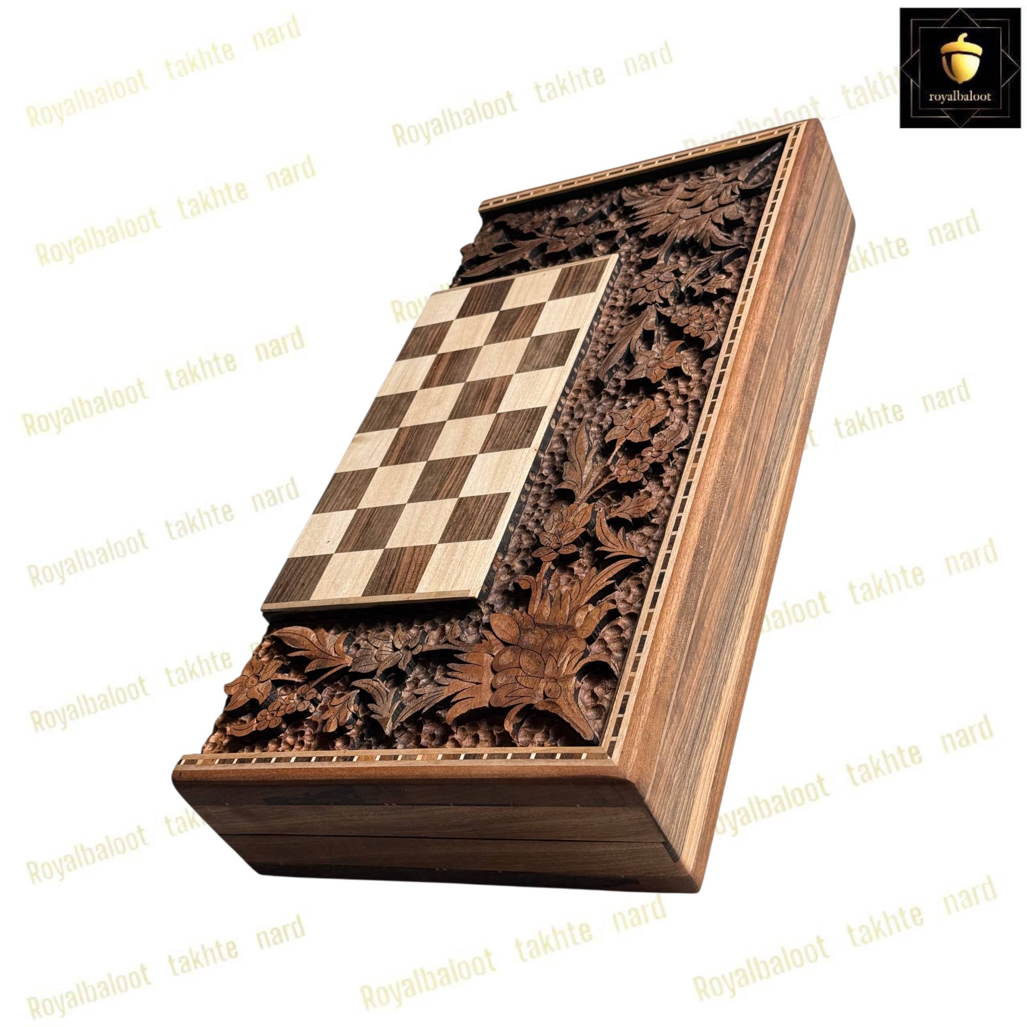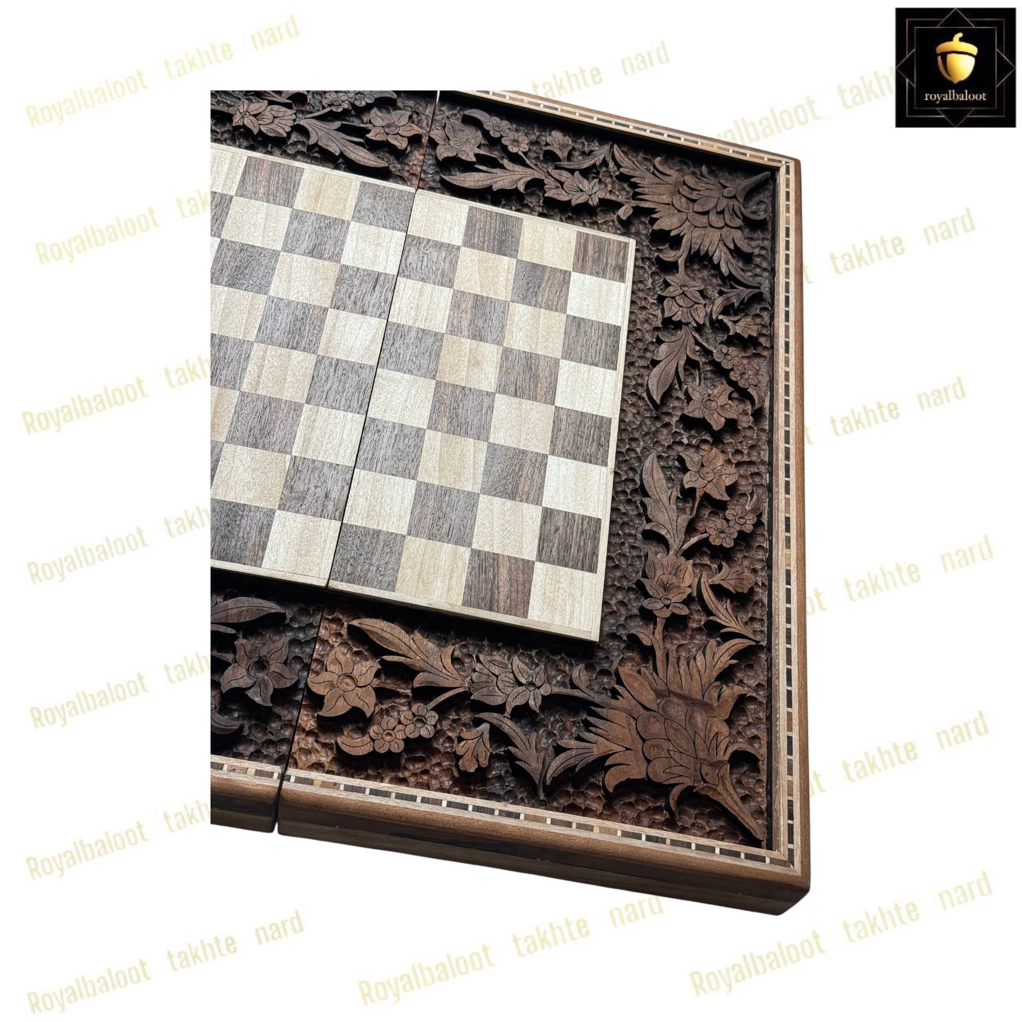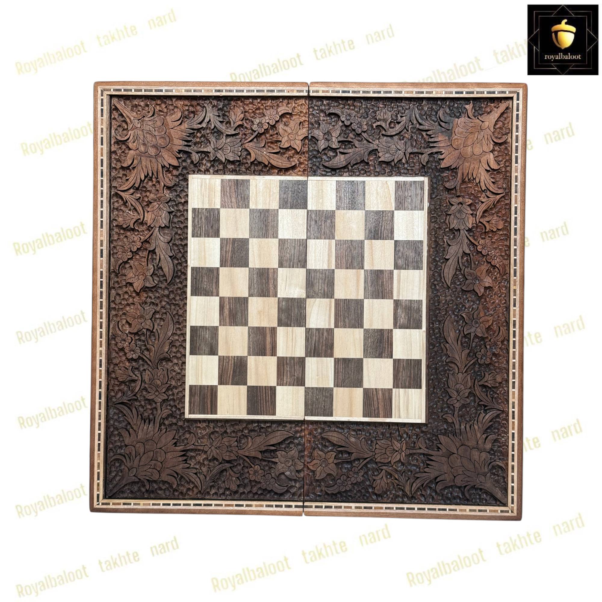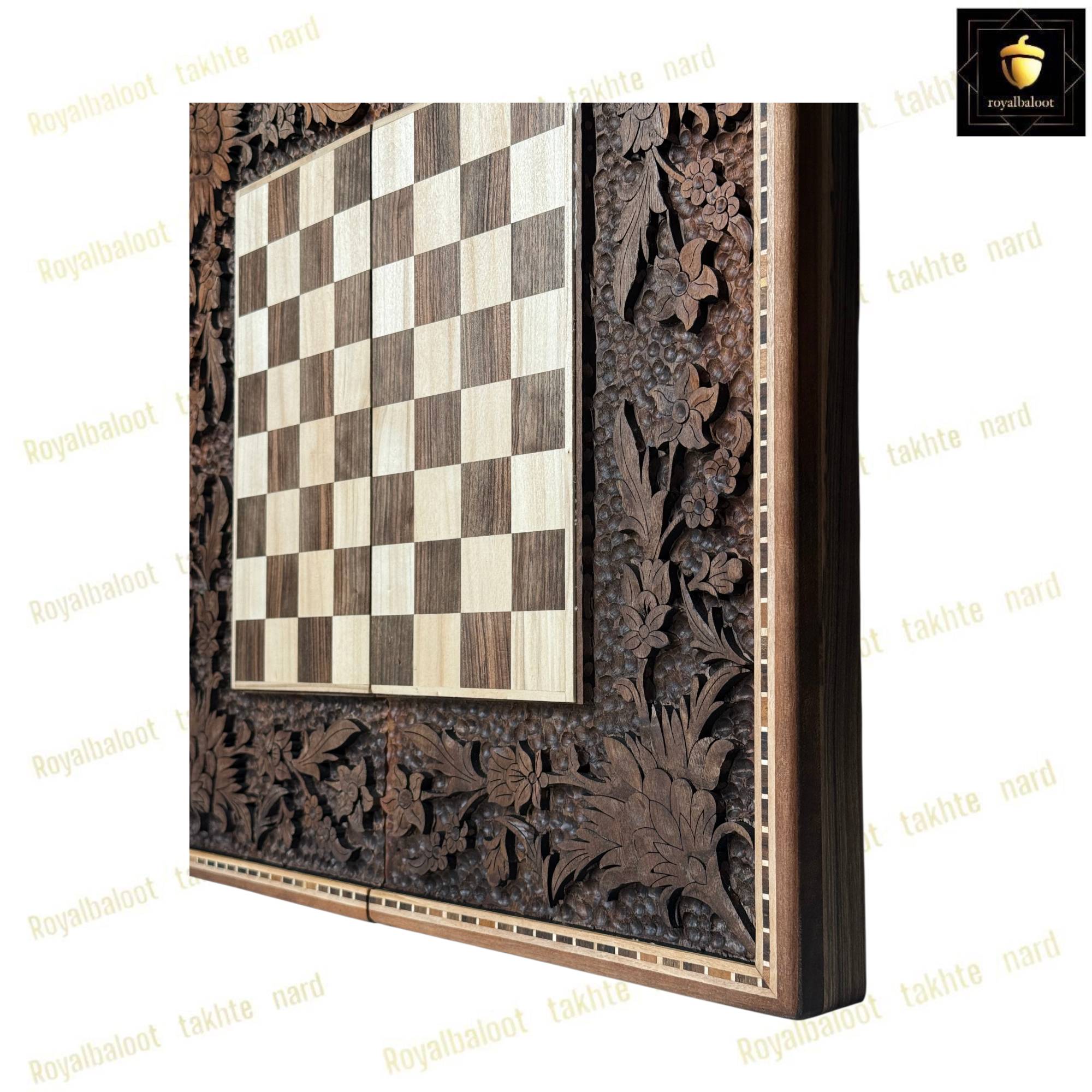 خرید تخته نرد گردو منبت حاشه شطرنج گل وحشی کد 497