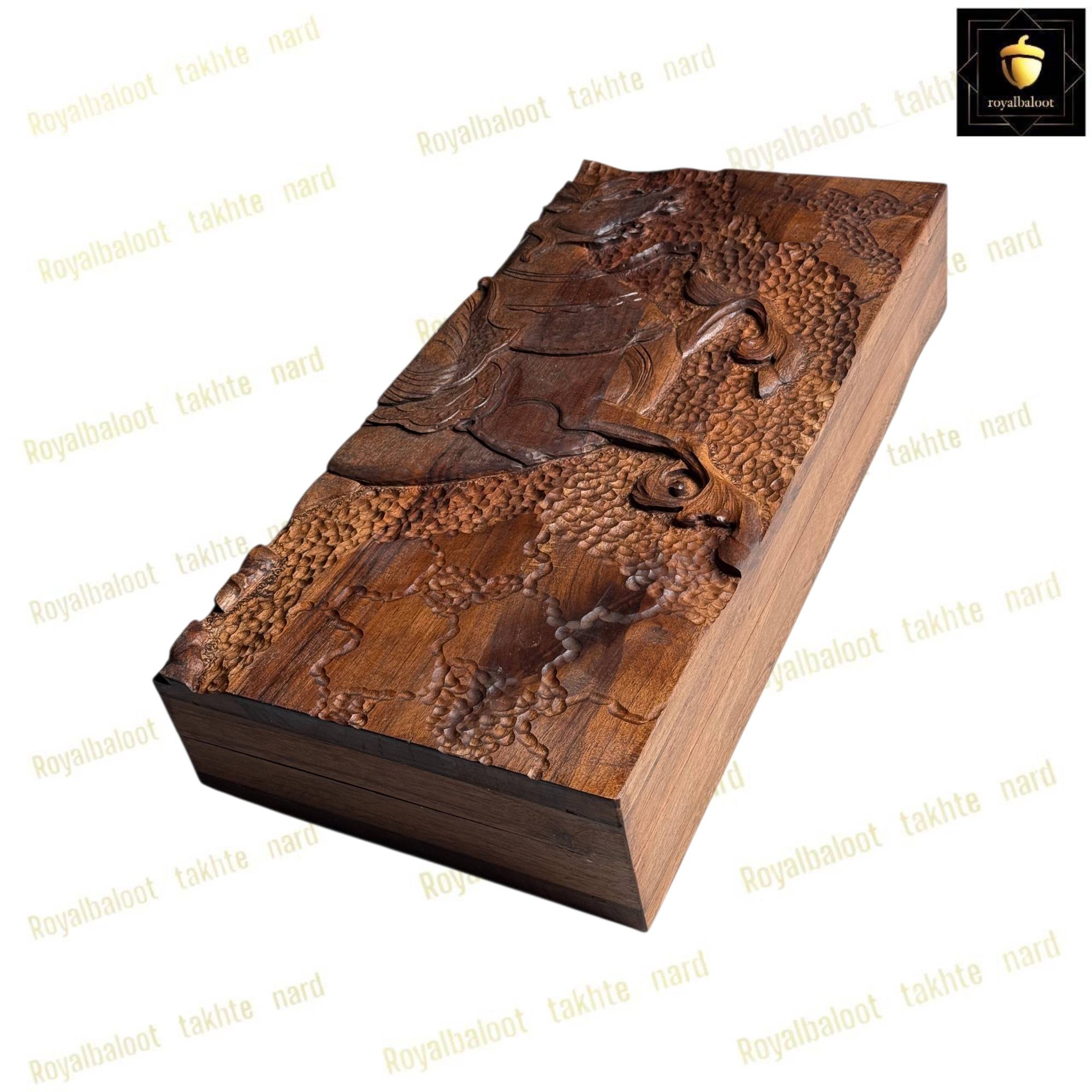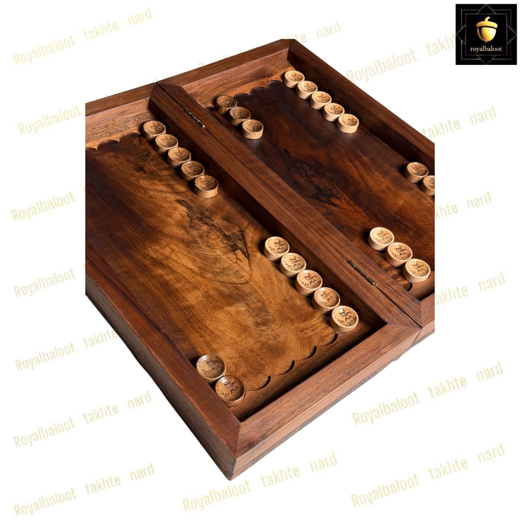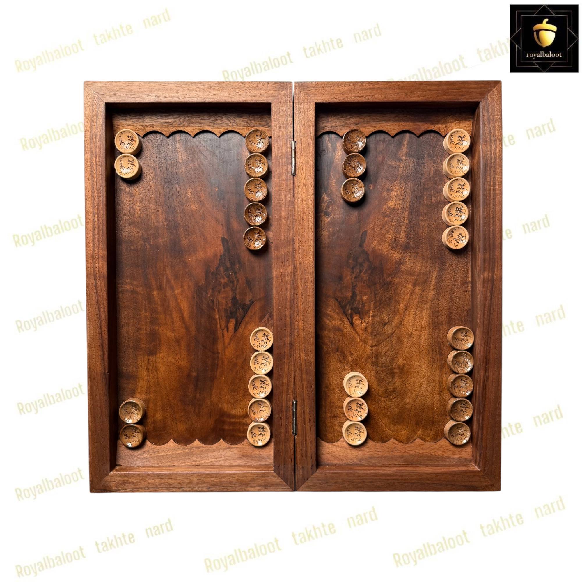 تخته نرد از چوب گردو خالص ساخته شده سایز تخته نرد 50*50 استاندارد میباشد پشت تخته نرد کامل منبت کار دست میباشد با عمق بسیار بالا و بسیار ظریف منبت شده داخل تخته نرد ریشه گردو میباشد حتی شانه های تخته نرد از چوب گردو ساخته شده دو عدد لولا قوی مخفی برای تخته نرد طراحی شده موجب راحت باز و بسته کردن تخته نرد میشود تخته نرد روغن هاردواکس خورده موجب استحکام تخته نرد میشود مهره تخته نرد چوب گردو زیر پارچه تاس المانی سنگین وزن دار مختص تخته نرد های گردو تاس مالزی چرخش بالا و کاور از جمله متعلقات تخته نرد میباشد تخته نرد به صورت کامل از چوب گردو ساخته شده بهترین چوب برای ساخت تخته نرد چوب گردو میباشد و بهترین انتخاب برای تخته نرد بازان و افراد حرفه ای میباشد تخته نرد های گردو منبت تولید مجموعه رویال بلوط به صورت تضمینی میباشد و در ساخت تخته نرد تمامی اصول رعایت شده منبت تخته نرد کامل کار دست میباشد و ارزش بسیار بالایی دارد تابلو تخته نرد را در اتمام بازی میتوانید به عنوان تابلوی دکوری روی میز در محل کار یا در خانه قرار دهید داخل تخته نرد ریشه گردو میباشد ارزش بسیار بالایی دارد